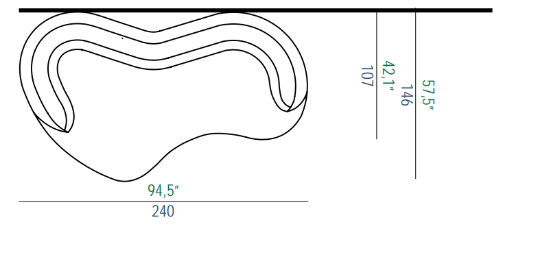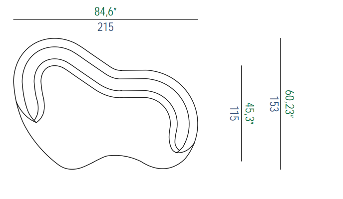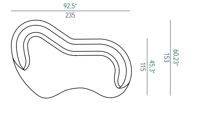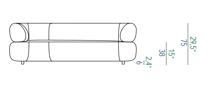 Rivestito in pelle o tessuto. Seduta in mousse 35M kg/m3. Schienale in mousse 21SM kg/m3. Struttura in abete massiccio e multistrato di pioppo (legno CARB). Sospensioni con cinghie elastiche incrociate. Piedini in metallo tinto nero. Cuscini decorativi in opzione.