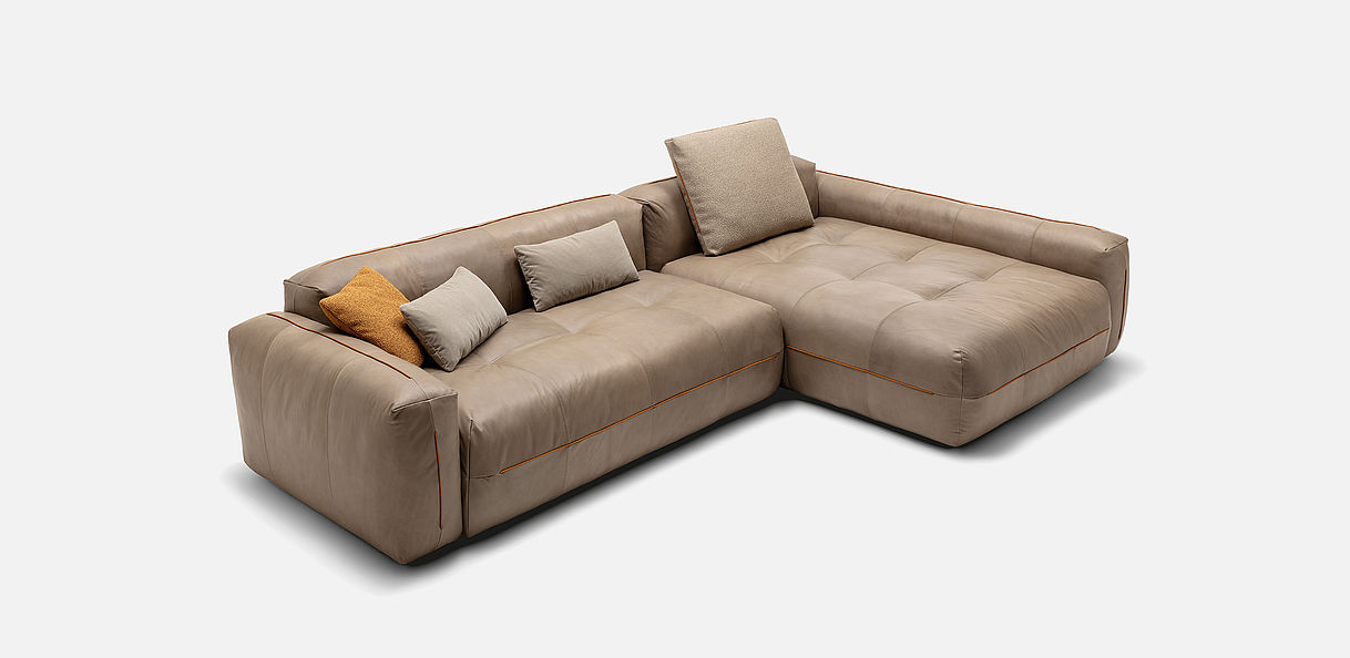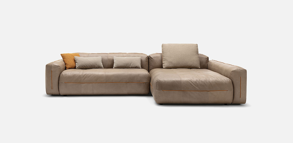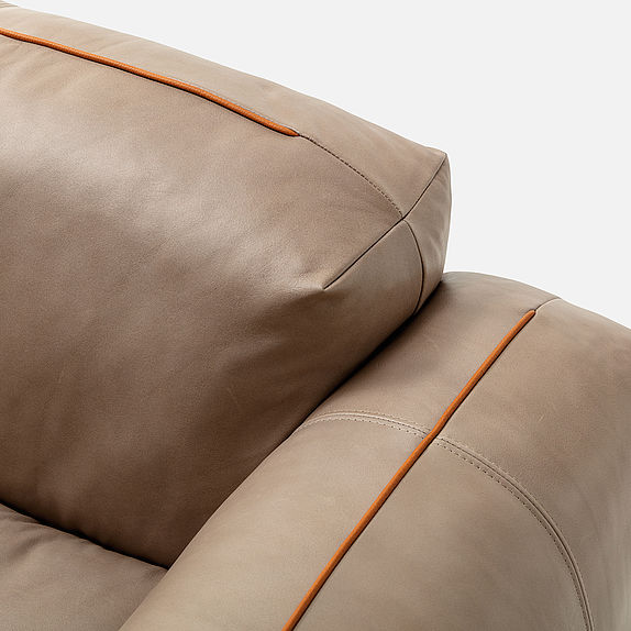 Let yourself sink in and relax: the expansive Rolf Benz MOYO sofa with a Chesterfield look and innovative stitch detailing is a tribute to the equally spacious and laid-back sofa landscapes of the 1960s and 70s. Top-quality comfort for individualists who desire authenticity – that’s what Rolf Benz MOYO stands for. This voluminous relaxation sofa with its distinctive contrasting piping is the focal point of any living area. It attracts plenty of attention without being ostentatious.