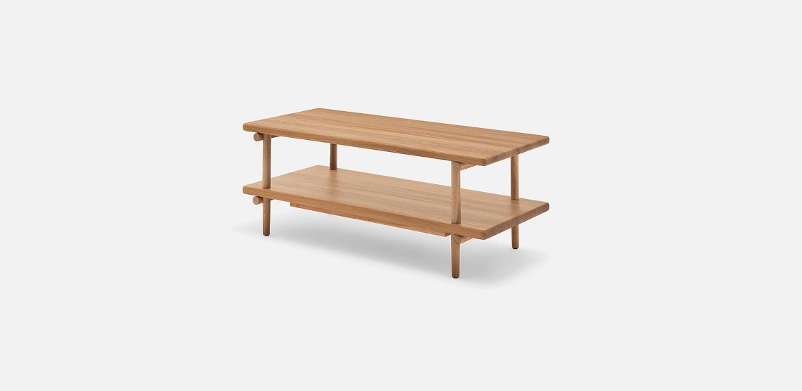 Interlocking table/add-on table/shelving coordinating with the 530 VOLO range. The interlocking tables/add-on tables can be connected as intermediate elements or positioned free-standing of the sofa. The shelving can be positioned to the rear or to the side of the sofa.