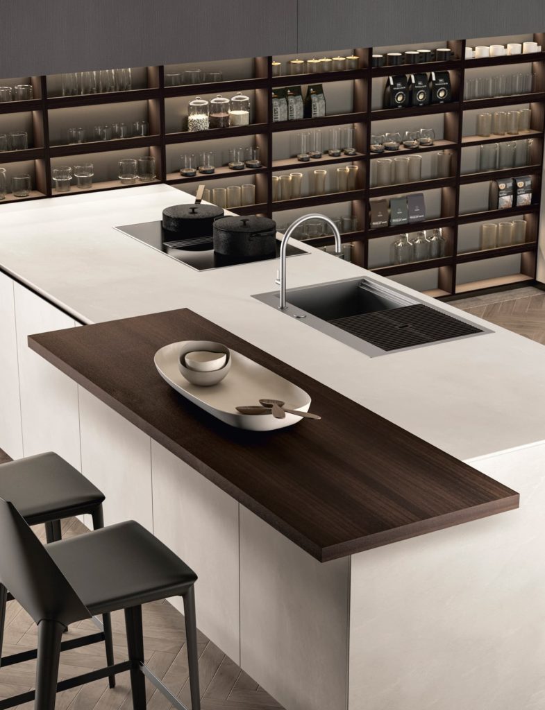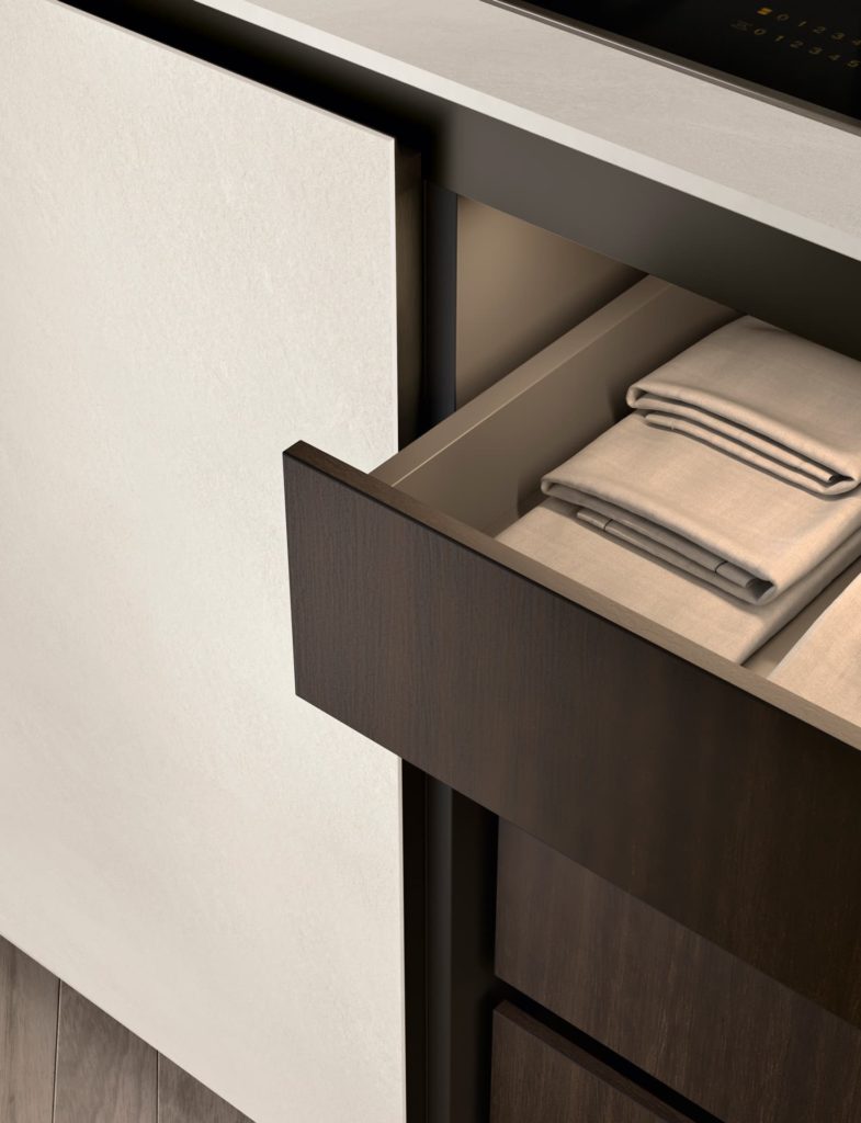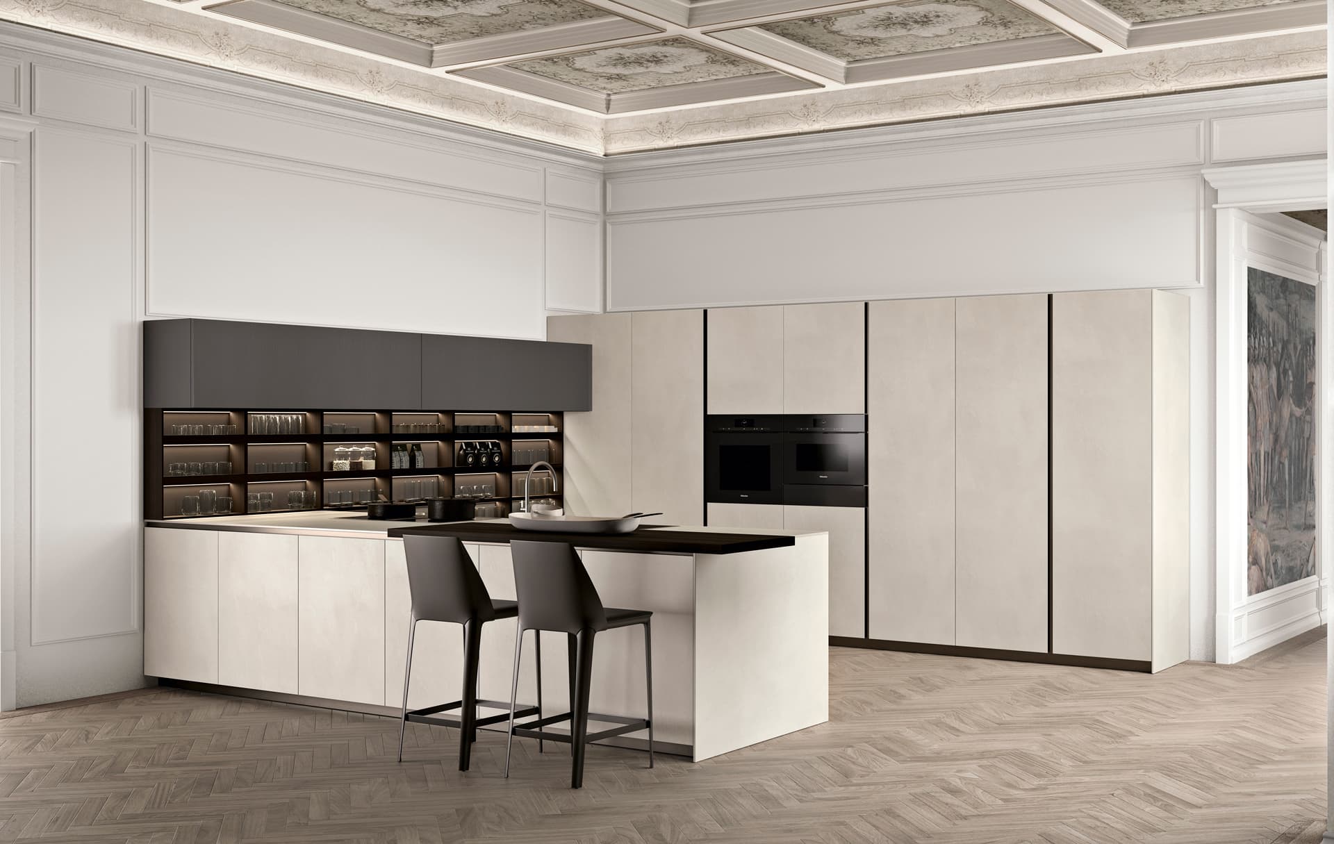 Massimo Castagna ripensa ed evolve la tipologia base della cucina contemporanea realizzando un progetto originale e innovativo che va oltre il concetto della cucina caratterizzata dall’anta: basi con volumetria a zoccolo basso a grande capienza e una vasta quantità di componenti speciali che, come oggetti, sono aggregabili alla composizione delle basi, proponendo nuovi significati e funzionalità, oltre che un alto grado di personalizzazione. Un progetto dinamico, costantemente in progress che evolve e si arricchisce man mano di nuovi elementi, valori, materie e significati.