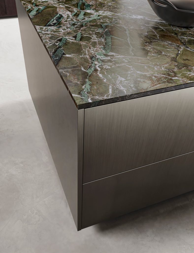 Massimo Castagna ripensa ed evolve la tipologia base della cucina contemporanea realizzando un progetto originale e innovativo che va oltre il concetto della cucina caratterizzata dall’anta: basi con volumetria a zoccolo basso a grande capienza e una vasta quantità di componenti speciali che, come oggetti, sono aggregabili alla composizione delle basi, proponendo nuovi significati e funzionalità, oltre che un alto grado di personalizzazione. Un progetto dinamico, costantemente in progress che evolve e si arricchisce man mano di nuovi elementi, valori, materie e significati.