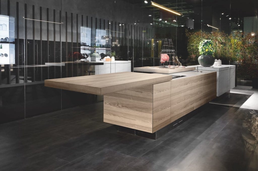 I coperchi diventano piani snack dallo sbalzo importante grazie alle speciali guide scorrevoli. Il movimento funzionante elettricamente grazie ad un sistema a basso voltaggio, permette di nascondere il top interno in cui sono installate cotture e cappe da piano nella versione indoor e i barbecue in quella outdoor. Le due cucine pur essendo visivamente uguali, tanto da poter essere utilizzate in continuità tra loro, sono costruite in modo profondamente diverso in virtù delle performance necessarie alla diversa collocazione: strutture in legno nella versione da interno, alluminio per la struttura da esterno. Un progetto finalizzato a garantire il massimo livello di qualità nella cucina contemporanea.