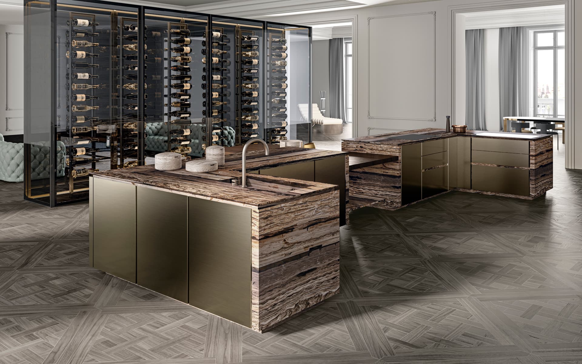 Massimo Castagna ripensa ed evolve la tipologia base della cucina contemporanea realizzando un progetto originale e innovativo e una vasta gamma di componenti speciali aggregabili, proponendo nuovi significati e funzionalità, oltre che un alto grado di personalizzazione. Un progetto dinamico che evolve e si arricchisce di nuovi elementi, valori, materie e significati.