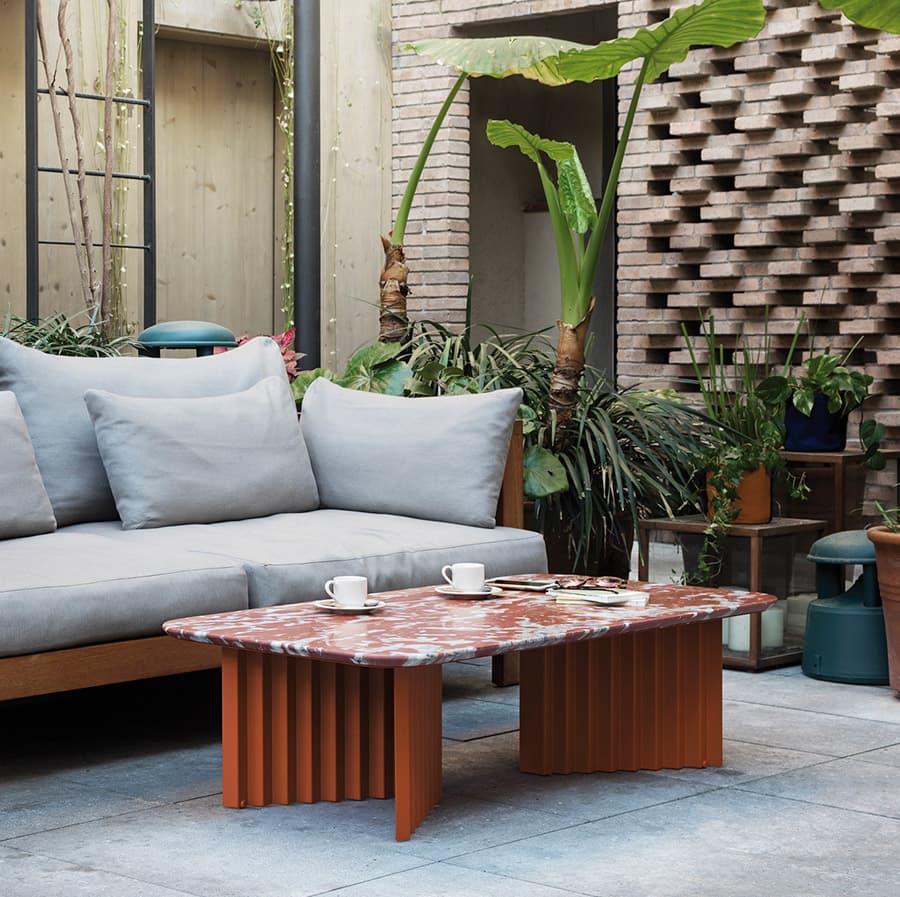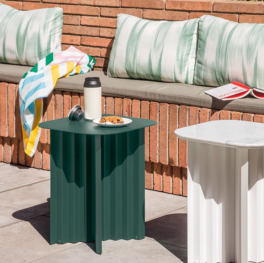 The Plec table collection fits stylishly into any setting and space, whether as a coffee table in front of the sofa, as a corner table in a reception area or waiting room, or in your garden surrounded by plants and flowers. Because the Plec table is also suitable for outdoor use thanks to the cataphoretic coating process applied to the steel.