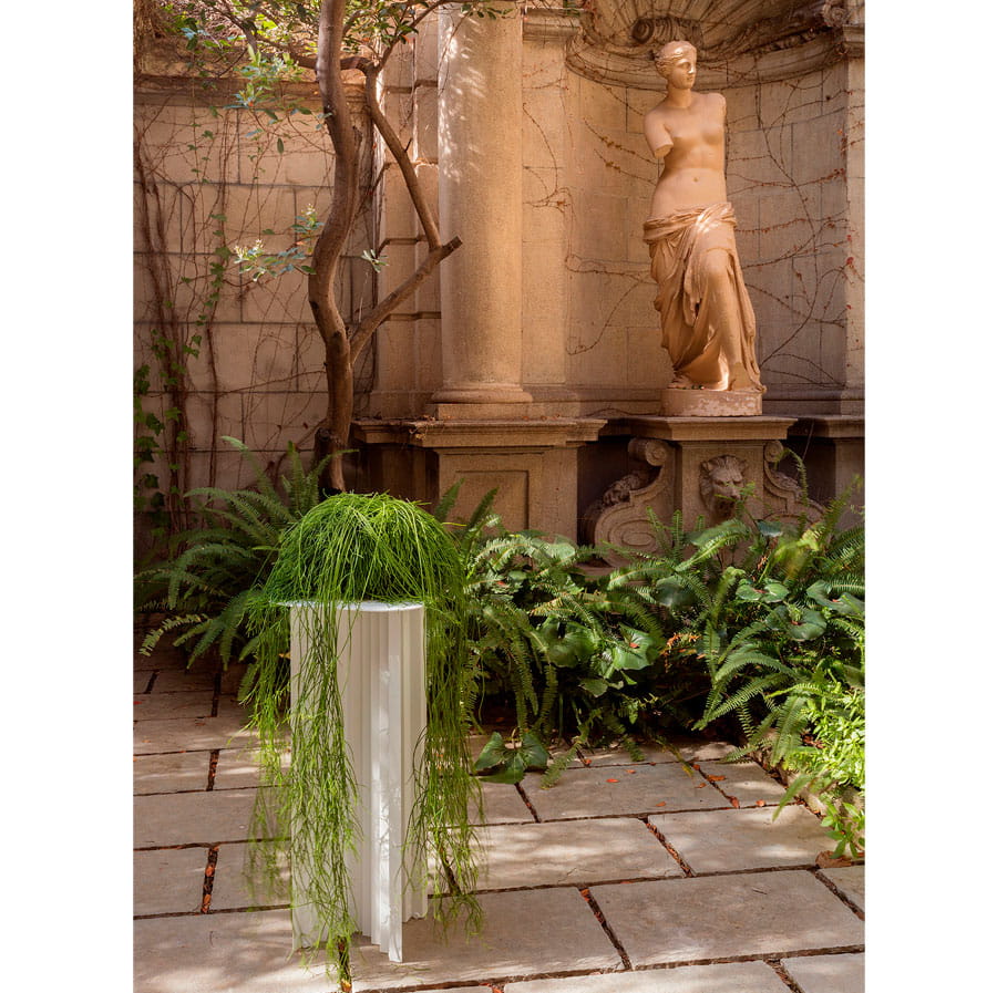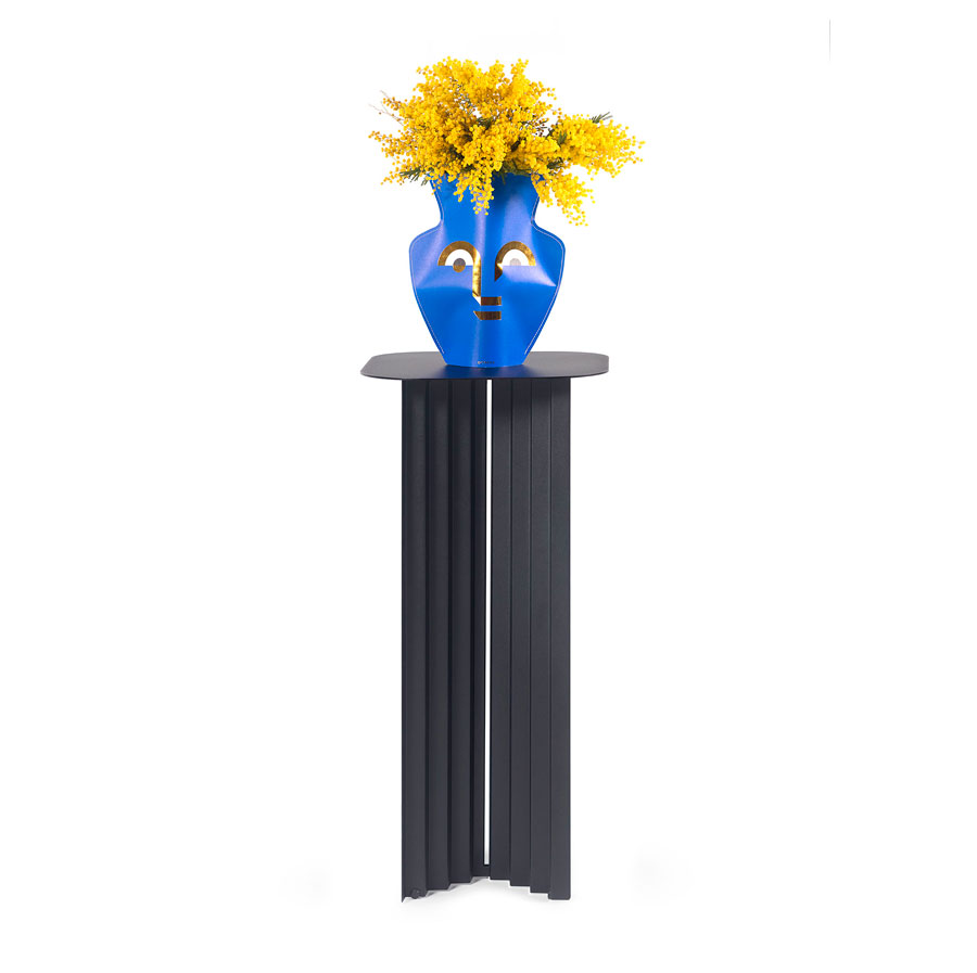 The Plec pedestal fits stylishly into any setting and space, whether in a corner of the living room, by the door in a reception or waiting room, or in your garden surrounded by plants and flowers. Because the Plec table is also suitable for outdoor use thanks to the cataphoretic coating process applied to the steel.
