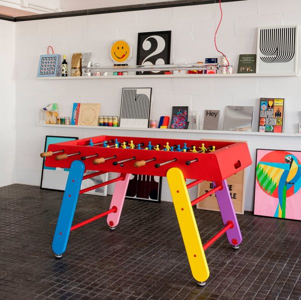 When the creative energy of two brands like RS Barcelona and Hey join up, the outcome can only be astounding! This is the way the RS4 Home x HEY Special Edition football table is born. An explosion of goals and colours that reveals the power of color and how the game becomes art.