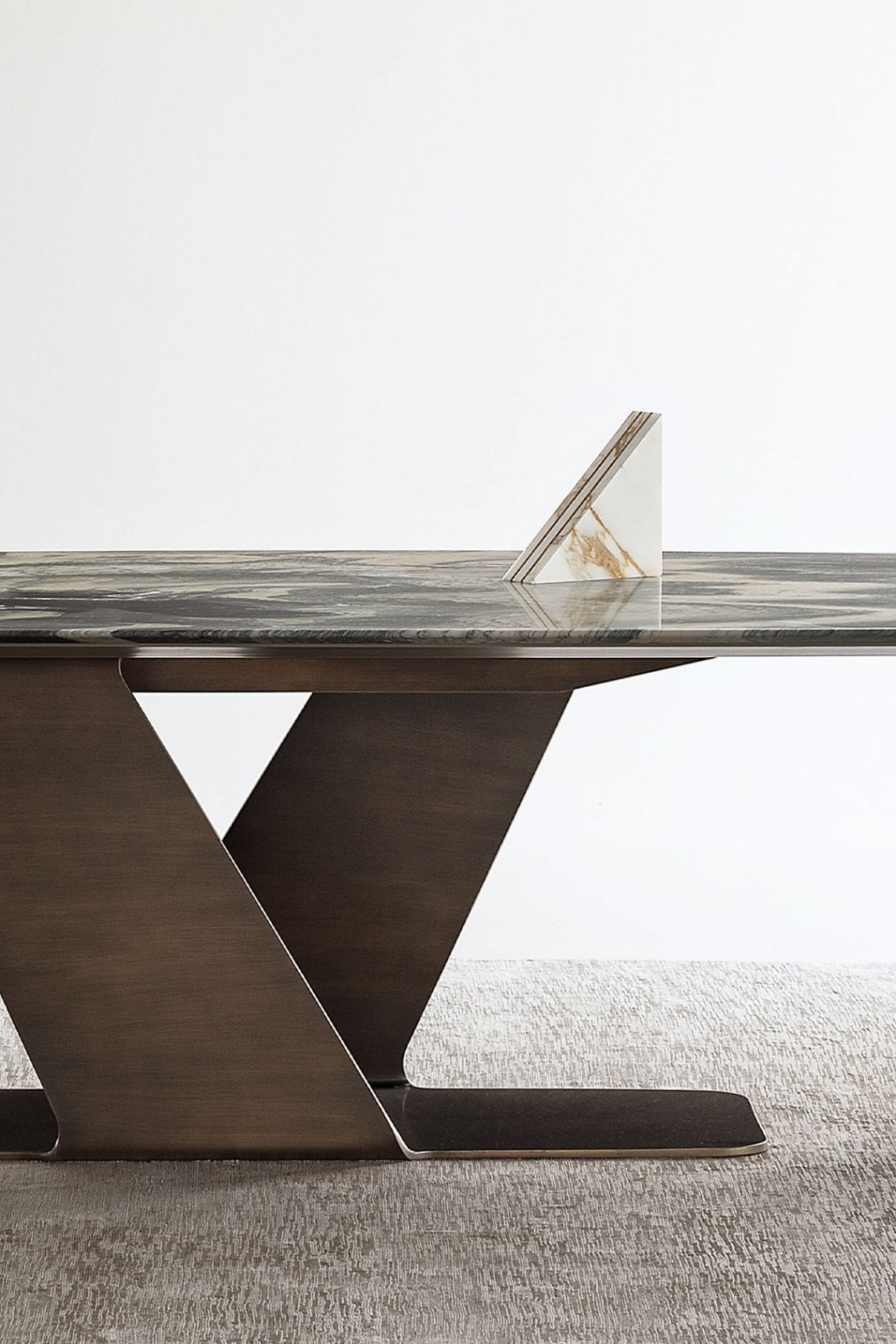 熟練的施工技術(shù)與設(shè)計(jì)相結(jié)合,創(chuàng)造出由不同類型的天然石材臺(tái)面和獨(dú)特的 Rugiano 裝飾豐富的雕塑底座。