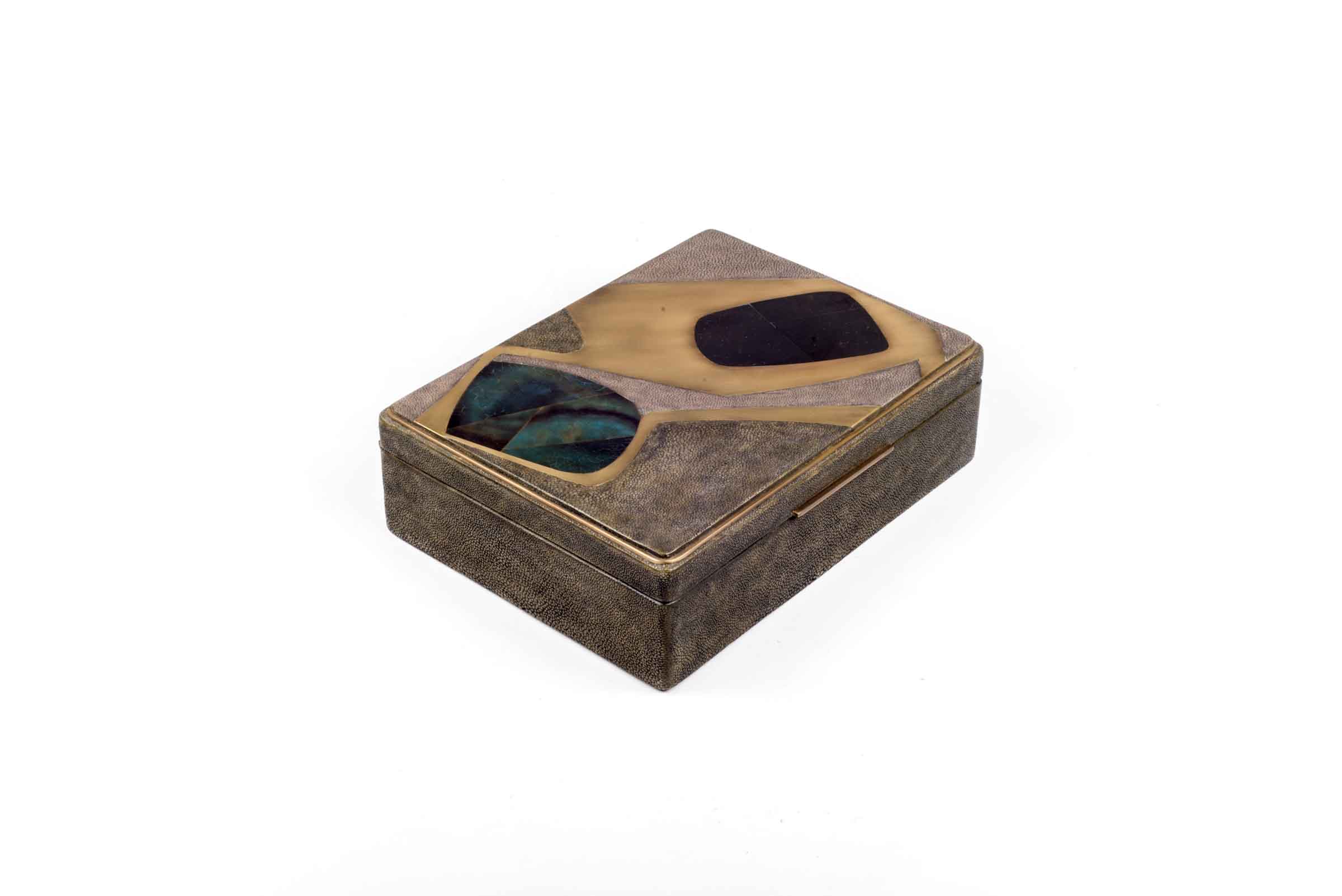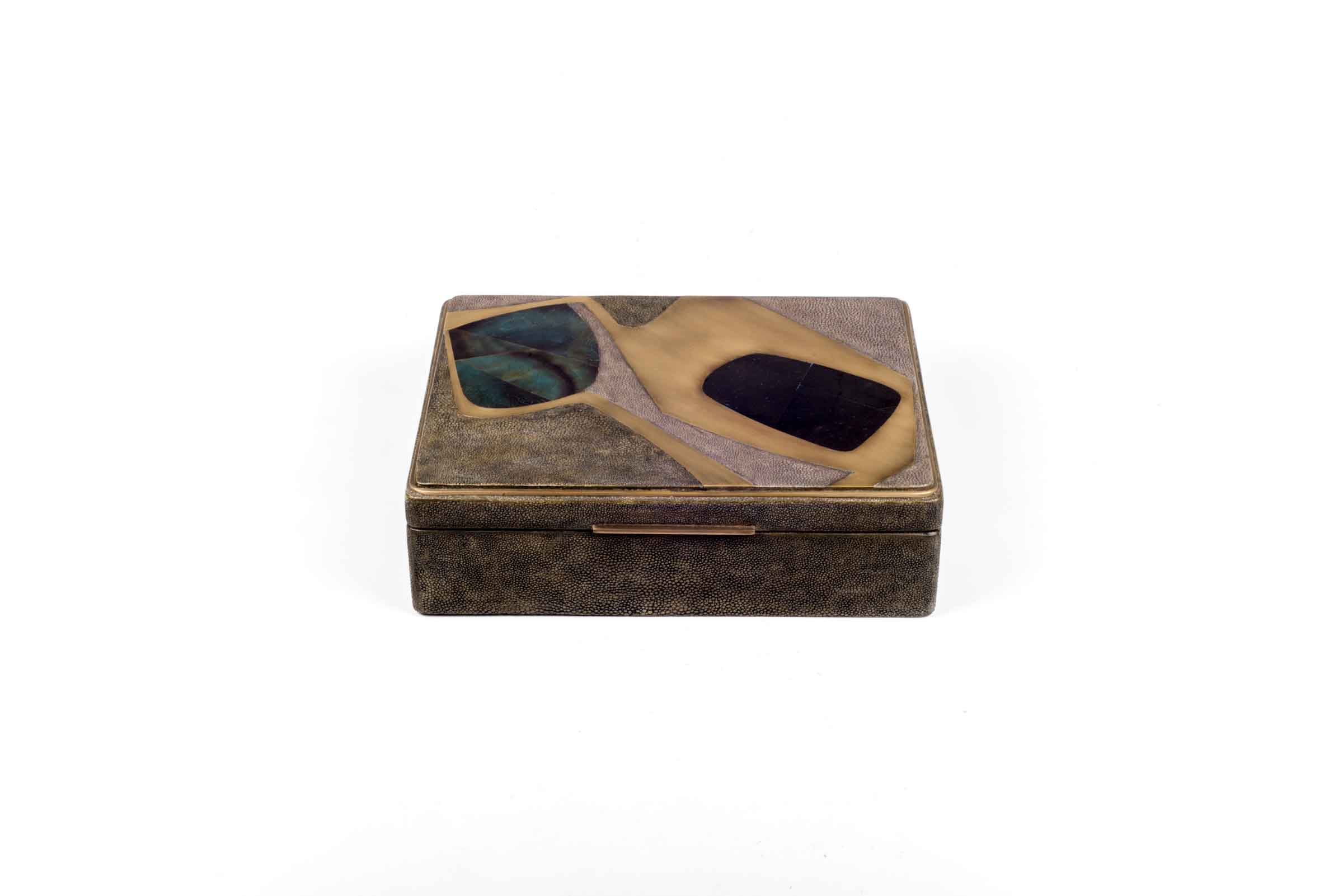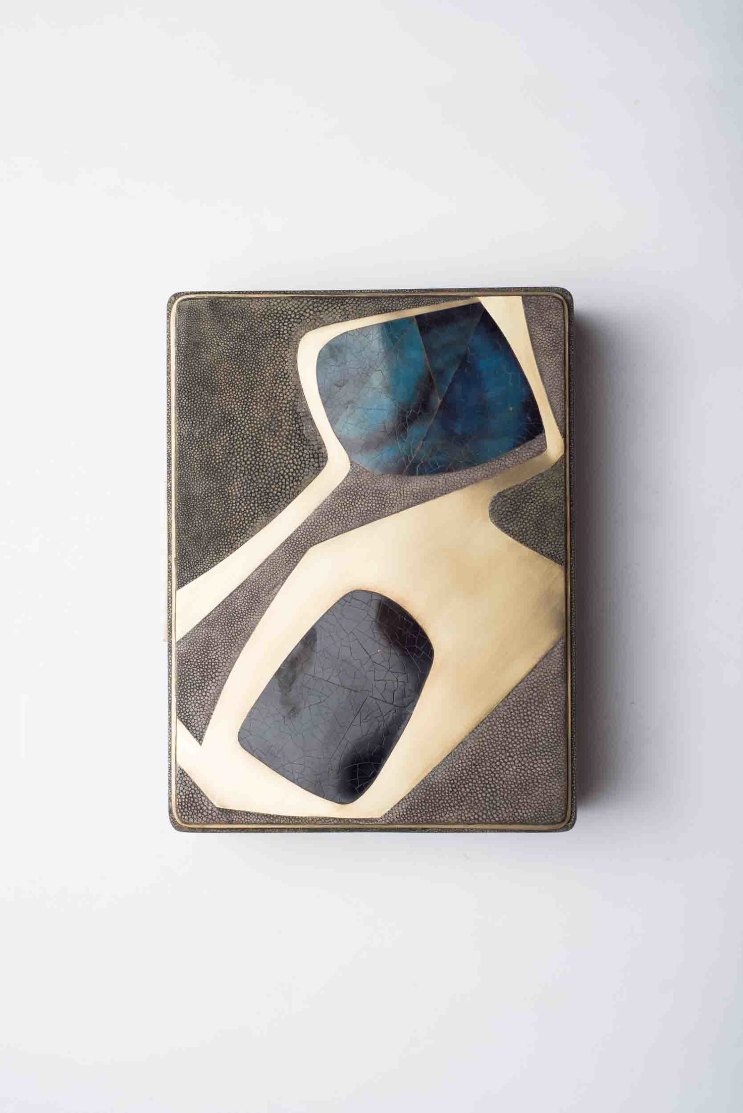 The Cosmos Dark Jewelry Box, includes intricate inlay work to create this abstract cosmic-inspired pattern. This item comes with a removable velvet interior box.