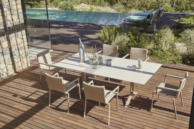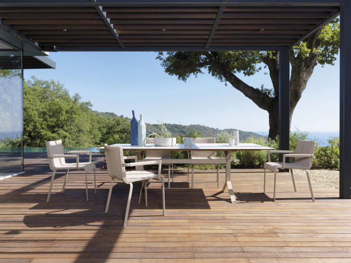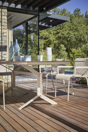 Tavolo in acciaio con trattamento a polveri e top in HPL. Sobrio, elegante, essenziale sono solo alcuni degli aggettivi per descrivere questo tavolo dalle linee sostanziali. Resistente e funzionale è ideale per l’arredamento esterno ed interno, per le aree living o per la zona pranzo, per i terrazzi ed i patii. Si inserisce armoniosamente sia in un arredamento contract che residenziale.