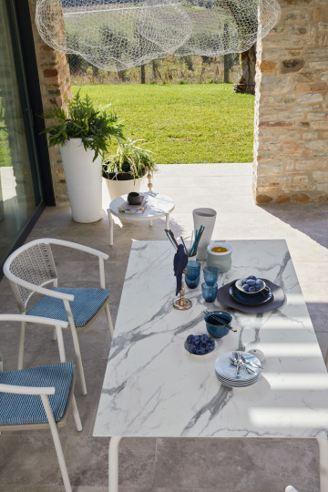 Tavolo con piano in vetro temperato moka e base in ghisa moka. Tavolo da 6 persone adatto per arredare terrazzi, giardini e zone living interne ed esterne. Classico e dalle linee semplici, la sua forza viene dalla robustezza del piano in vetro temperato. Ideale per l’arredamento contract e residenziale.