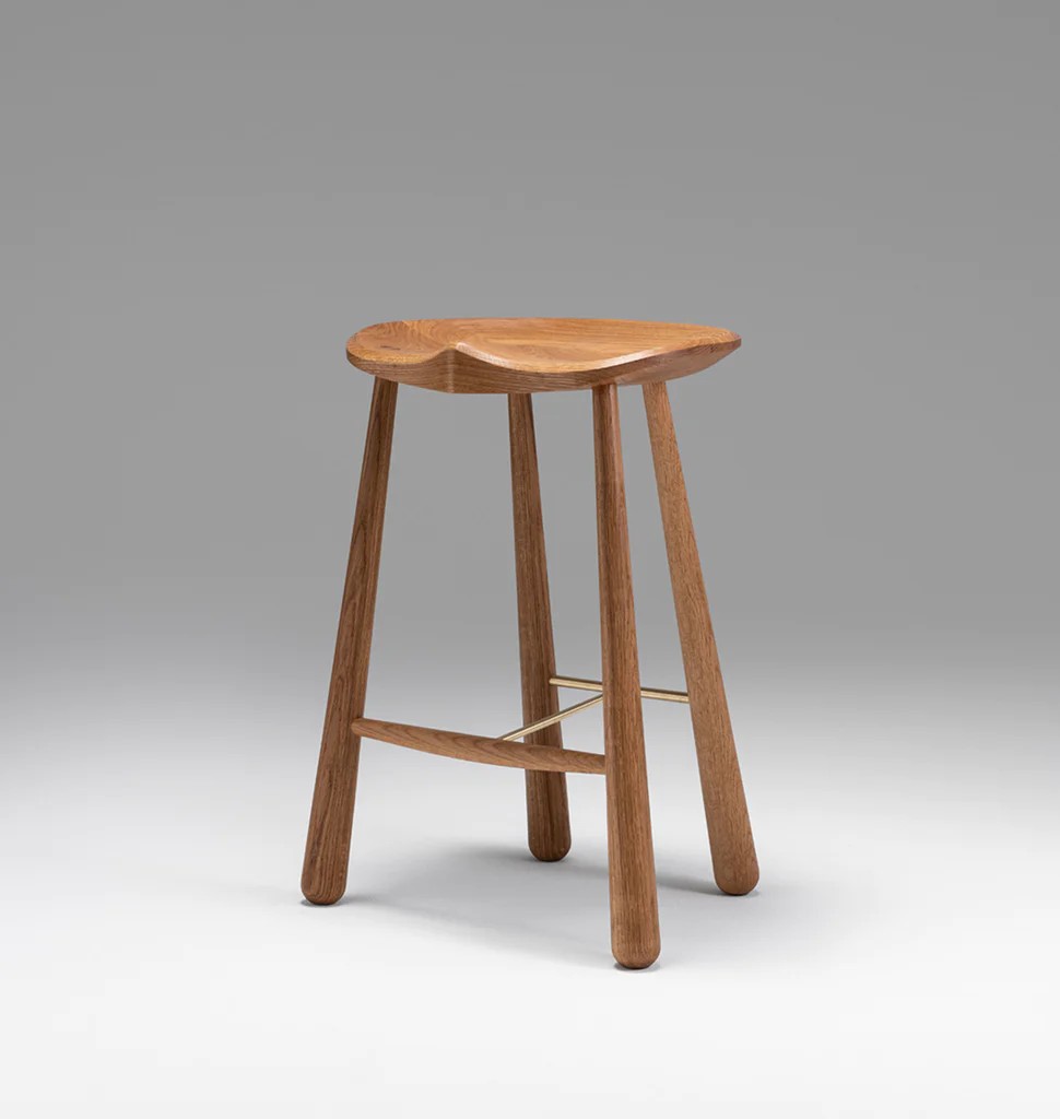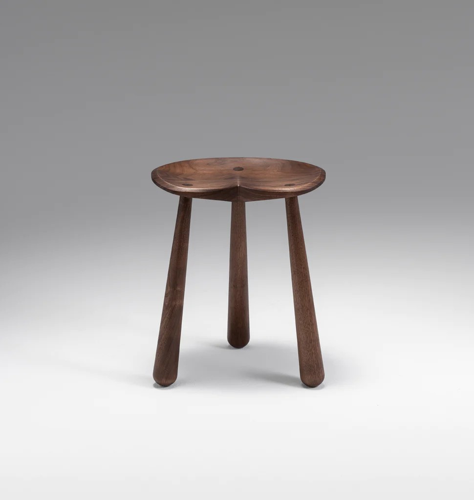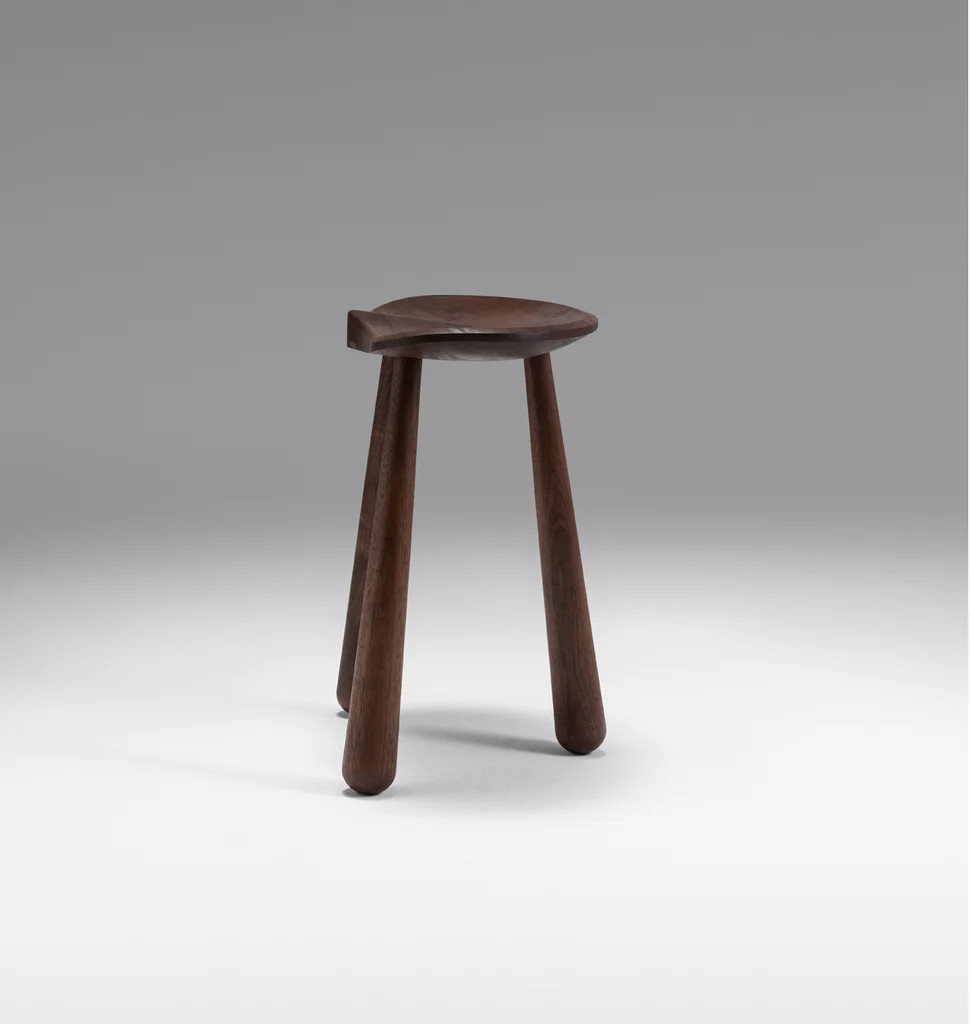The Taper Stool evokes the pragmatic functionality of a milking stool, using elevated materials and finely honed craftsmanship. The distinct teardrop shaped legs were refined by Karl Zahn working at his lathe and form the basis of a design that is both utilitarian and beautiful.