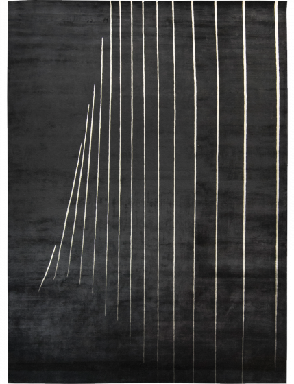 Noir is part of the Armani/Casa Rug Collection brought to you by a collaboration between Sahrai and Armani/Casa. One of the modern black and white area rugs in the Collection, this design features gradient coloured stripes fading from white to a pitch black background giving a dramatic twist to this precious rug in silk. The silk enhances the graphic perspective design with strong colour contrast, while the carving makes the precise lines to stand out. Density: 100 knots/squared inch. The carpet is hand knotted without any child labour in:100% natural Silk