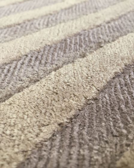 Miles is part of the Armani/Casa Collection of luxury area rugs brought to you by a collaboration between Sahrai and Armani/Casa. It features a wavy design. The three dimensional effect to the full width design comes from the relief technique and from the shading of the stripe lines. Density: 100 knots/square inch. The carpet is hand knotted without any child labour in:100% Silk