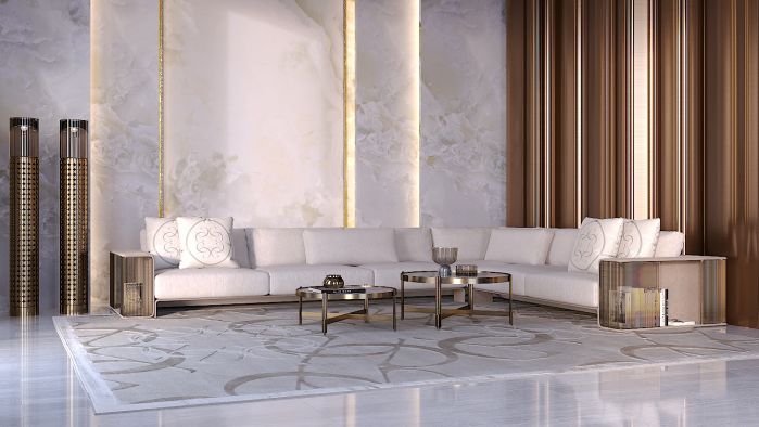 The ELIE SAAB Maison Rug Collection presents Monogram - designed by the famous architect Carlo Colombo. The ELIE SAAB crest, a distinctive element of the ELIE SAAB universe, becomes the focal point of this impressive and scenographic rug. Inspired by an imperial and royal pattern synonyms with luxury and innate elegance, the crest represents the initials of ELIE SAAB creating a seal that portrays the brand's identity and is embellished on gowns and accessories reflecting sophistication and distinction. This design comes in a superior handtufted finish in: