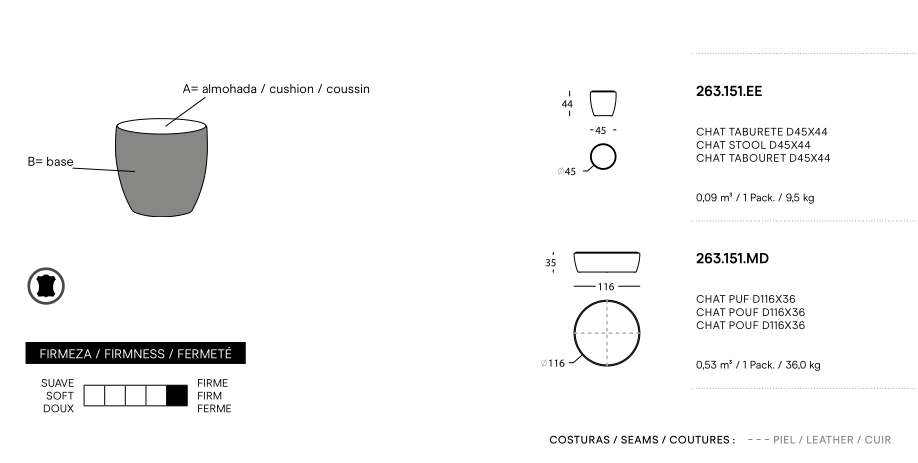 seats formed of one pouf and one stool.
