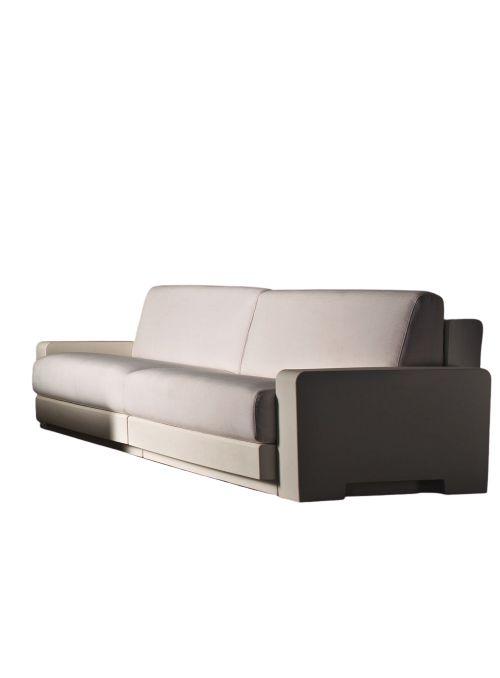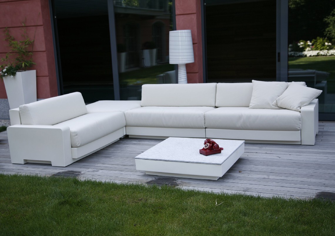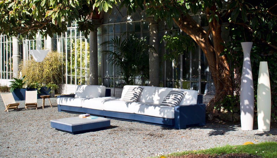 Collection of modular luxury furniture and outdoor sofas for indoors and outdoors. The structure of the outdoor sofas is made from polyethylene with padded cushions, available in different colours and fabrics.