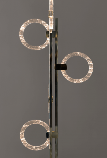 Glass spheres of various colours, finely worked, shape the light through transparency.