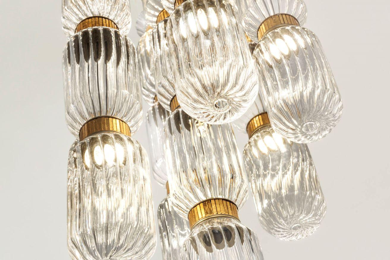 Glass spheres of various colours, finely worked, shape the light through transparency.