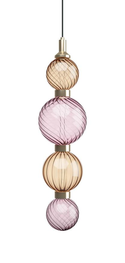 Glass spheres of various colours, finely worked, shape the light through transparency.