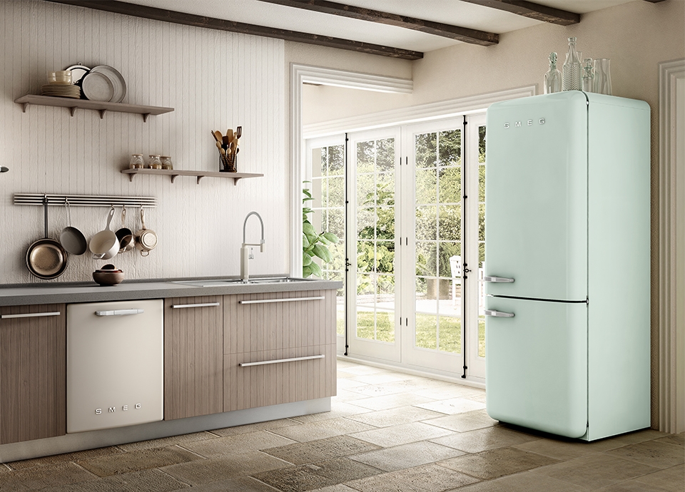 50 年代復古系列,獨立式上下開門冰箱,無霜 - 雙制冷系統,右手開門,圓角設計,熱塑材質,, 鉻色把手,