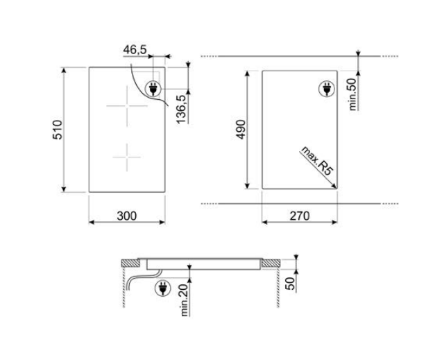 30cm 電磁爐,垂直直角邊緣,兩個加熱區