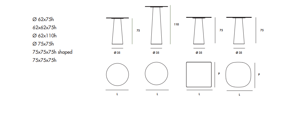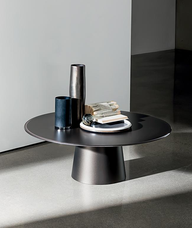 Tavolino con base in metallo laccato, varie finiture. Top temperato o stratificato in varie misure, materiali e finiture.