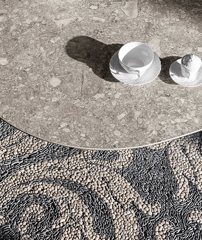 La ricchezza di personalità e la possibilità di realizzazione su misura della collezione Totem trova ampia espressione nella sua versione outdoor impiegata in esterni residenziali, lounge e restaurant bar. La versione tavolino in due altezze completa la zona per rilassarsi nello spazio outdoor.
