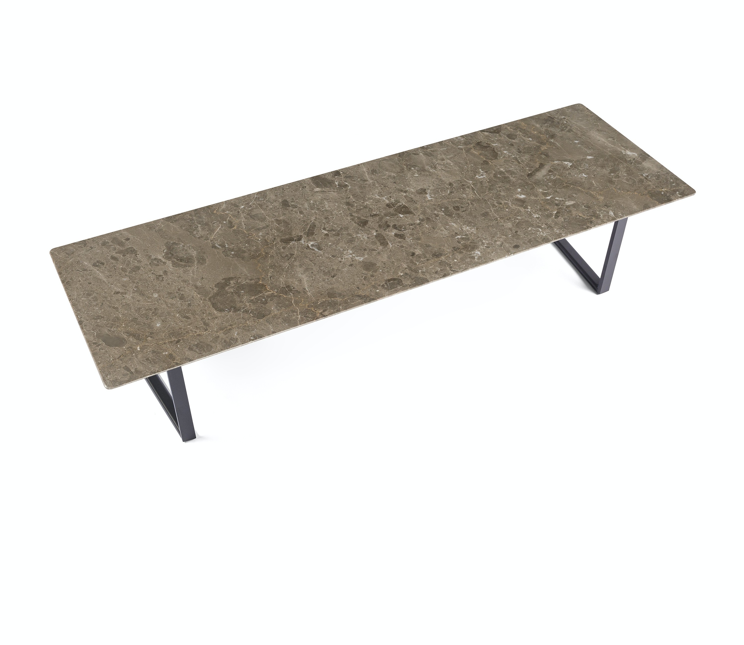 Designed by Piero Lissoni exclusively for Salvatori, Dritto combines elegant lines of classic natural stone with a bold geometric frame crafted from iron.