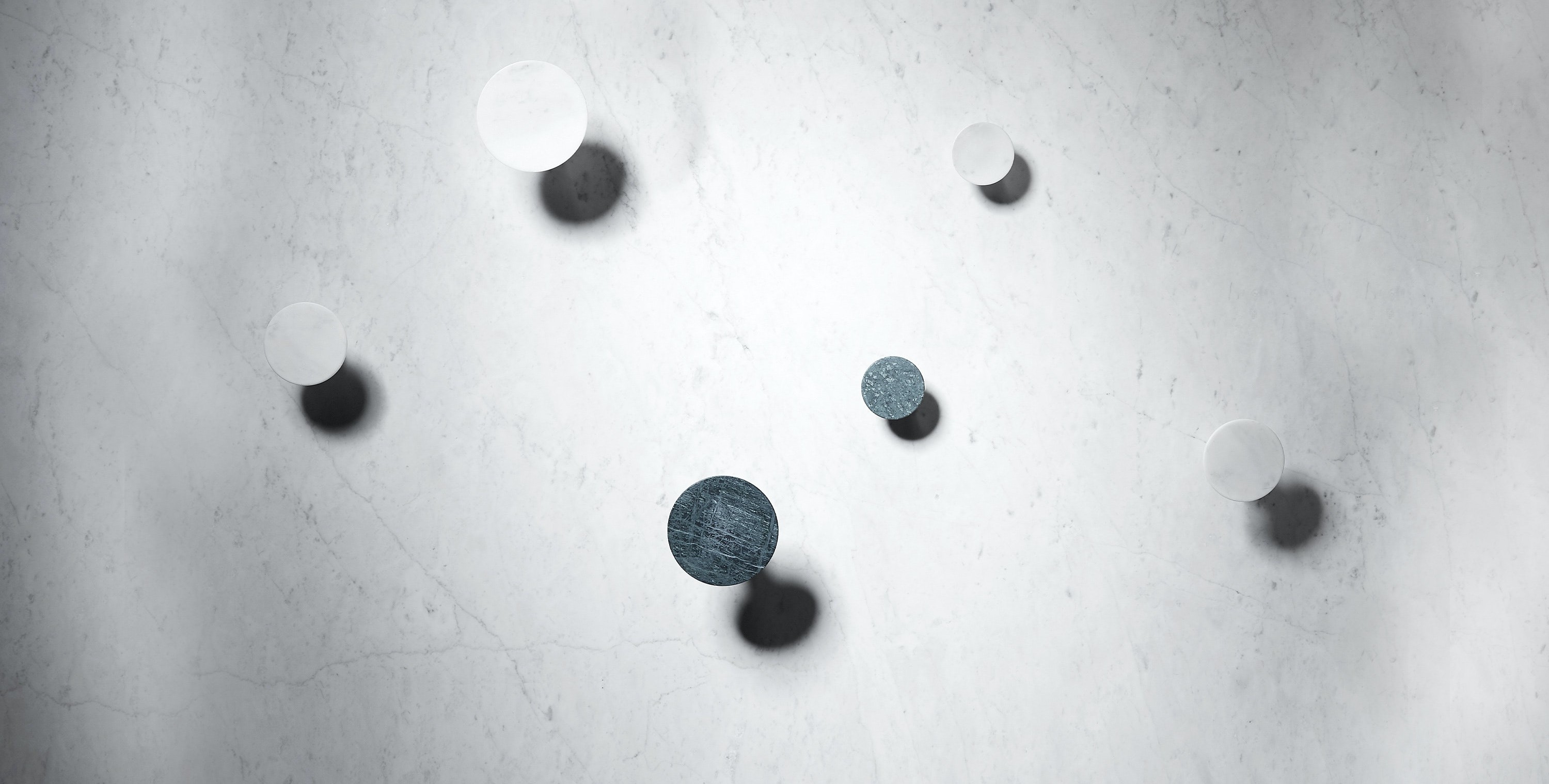 Available in a range of colours and stone types — white Bianco Carrara, creamy Botticino, opulent Verde Alpi and dapply grey Gris du Marais? — these understated hooks add a flourish of sophistication to any room.