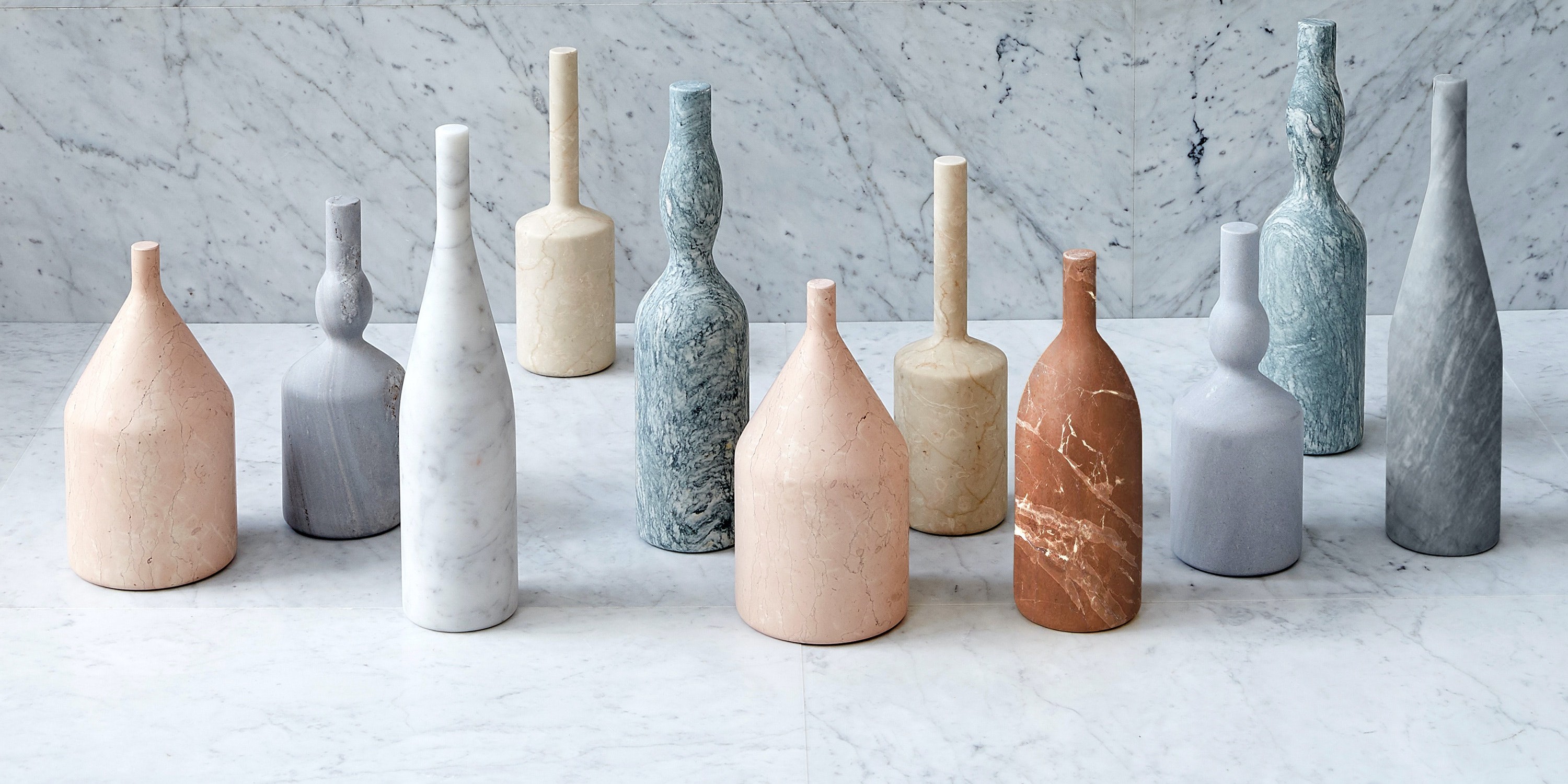 The still life paintings of Giorgio Morandi are known for their pensive nature and muted tones. For the Omaggio a Morandi series in collaboration with Salvatori, Elisa Ossino has drawn upon the Italian painter’s simplicity of form in his still life images, reproducing them in stunning marble.