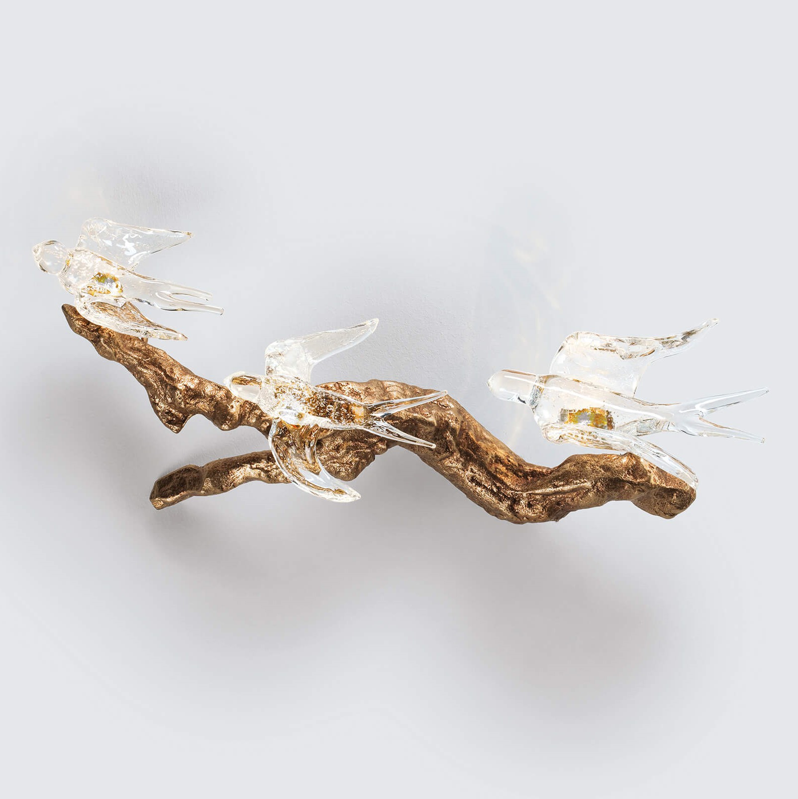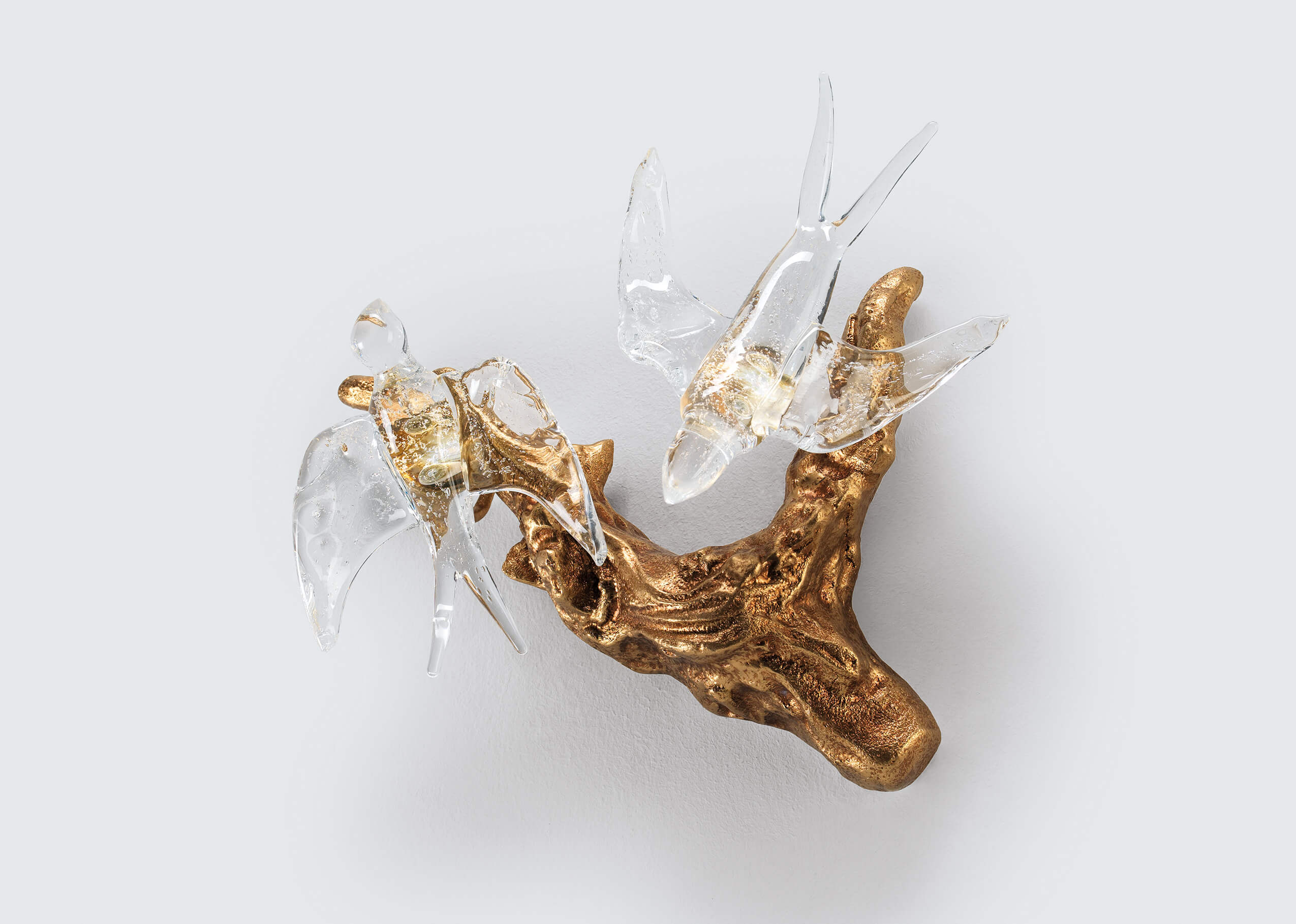This marvellous species of swallows known as “Hirundo Rustica” presents spectacular ballets where they paint the skies like ballerinas. Their funnel-shaped bodies are also a Portuguese icon, which translates our soul in movements and shapes. The unfindable configurations that they perform allow this singular collection to create beautiful visual compositions. Either in suspension or standing on the walls, they create a dramatic game of shadows and light. Also, they can stay aligned, side by side, in an extreme organic and sharp textured tree branch creating extraordinary contrasts with the smooth and fluid shapes of their bodies.
