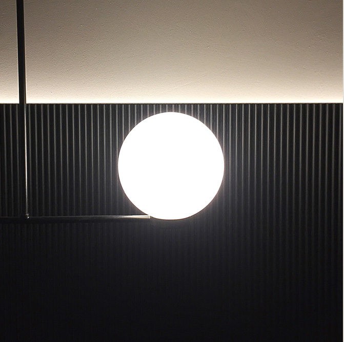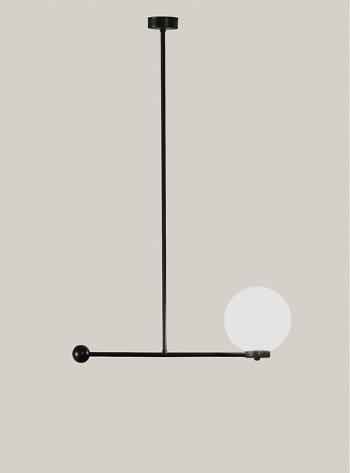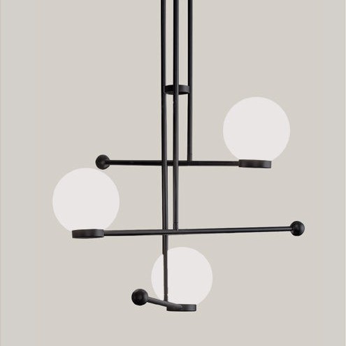 metal structure in black finish with 3 milk white glass spheres