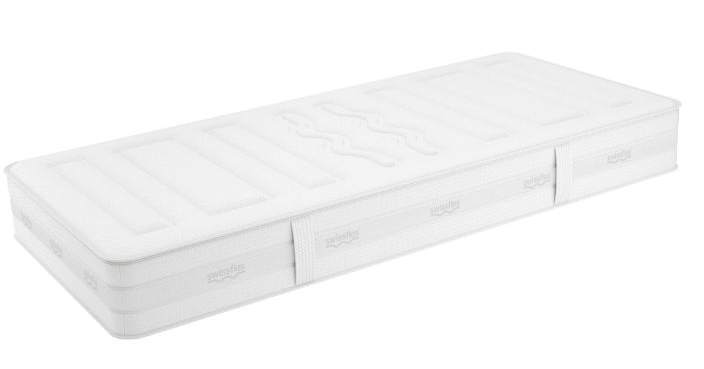 The Swissflex? versa 26 Evo Swiss premium mattress offers best conditions for relaxed sleeping comfort. Thanks to its core being made of 100% high-quality EvoPore foam, the 7-zone foam mattress flexibly adapts to your body contours and also enables an easier recycling process. A comfortable sleeping climate is ensured by cross ventilation channels inside the mattress: Sweating or freezing during the night is thus prevented. The premium mattress is complemented by 3 high-quality cover options: Choose your favorite and experience a dreamlike feeling as if you were lying on clouds.