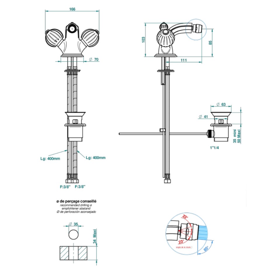 MANDARINE METAL坐浴盆混合器尺寸圖1