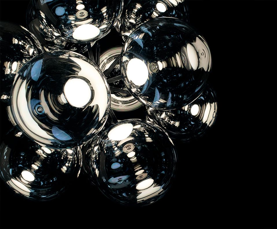 You can probably tell that we are obsessed with spherical objects. In our perpetual quest for the purest forms, Globe stands out as the most minimal of the lot. A spherical orb, highly mirrored and perfectly reflective during the day, when switched on reveals a multiplicity of internal reflections from the integral LED. As part of 24 Hours in Milan, we launched BURST, the brand’s largest chandelier to date.
