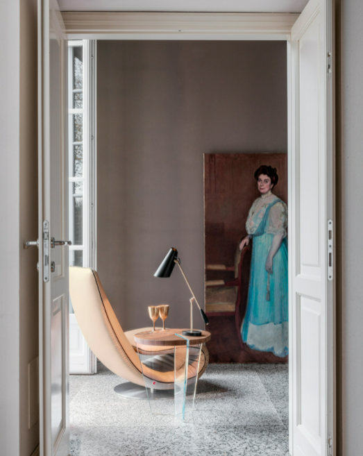 Come l’amore della principessa, anche Aida si fonda su due elementi estremamente diversi: una base in vetro trasparente, in tre linee rigide; un piano rivestito in legno noce canaletto, o rovere scuro termotrattato, tondeggiante. Una lavorazione complessa per armonizzare materie e disegni.
