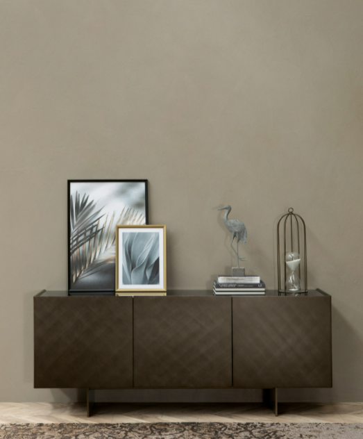 Una credenza con lavorazione spazzolata disponibile nella versione bronzata, rame o titanio. Una texture semplice ma di effetto per abbinare le madie alle basi dei nostri tavoli.
