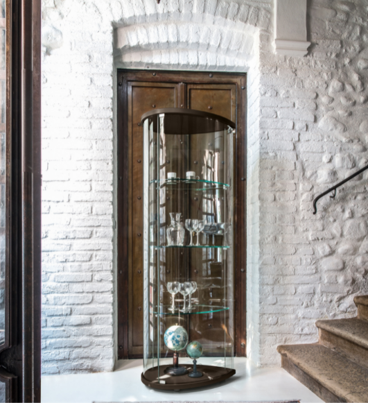 Una vetrina dedicata a chi desidera un contenitore che sia all'altezza del contenuto: vetro curvato e legno si mescolano alla perfezione in Olivella, creando un connubio di presenza materica e luce. Gli spazi vuoti risplendono grazie alla luce al LED compresa, e rendono ulteriormente elegante questa già raffinata vetrina in vetro curvato.