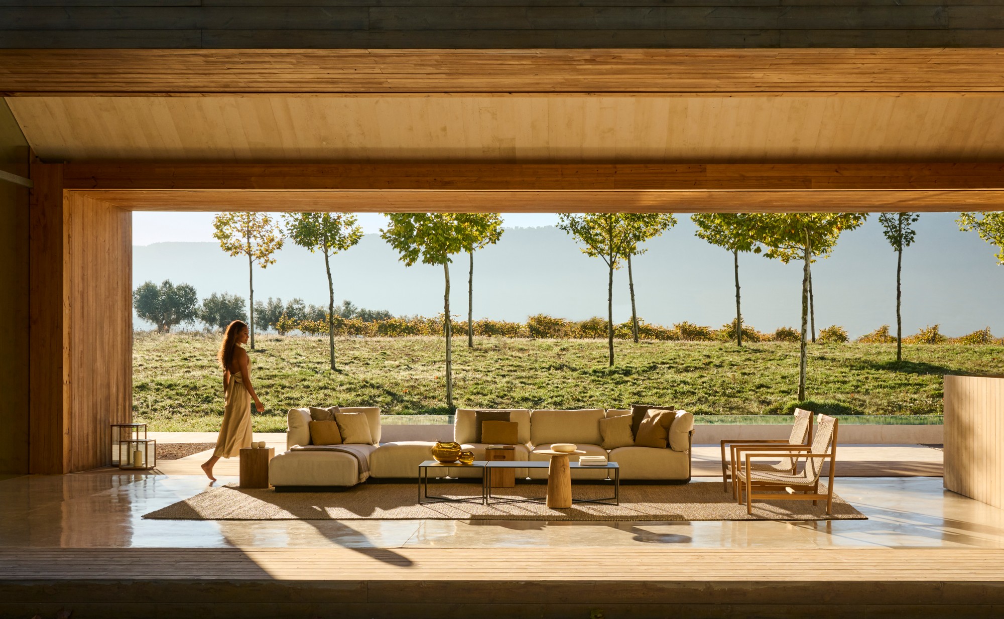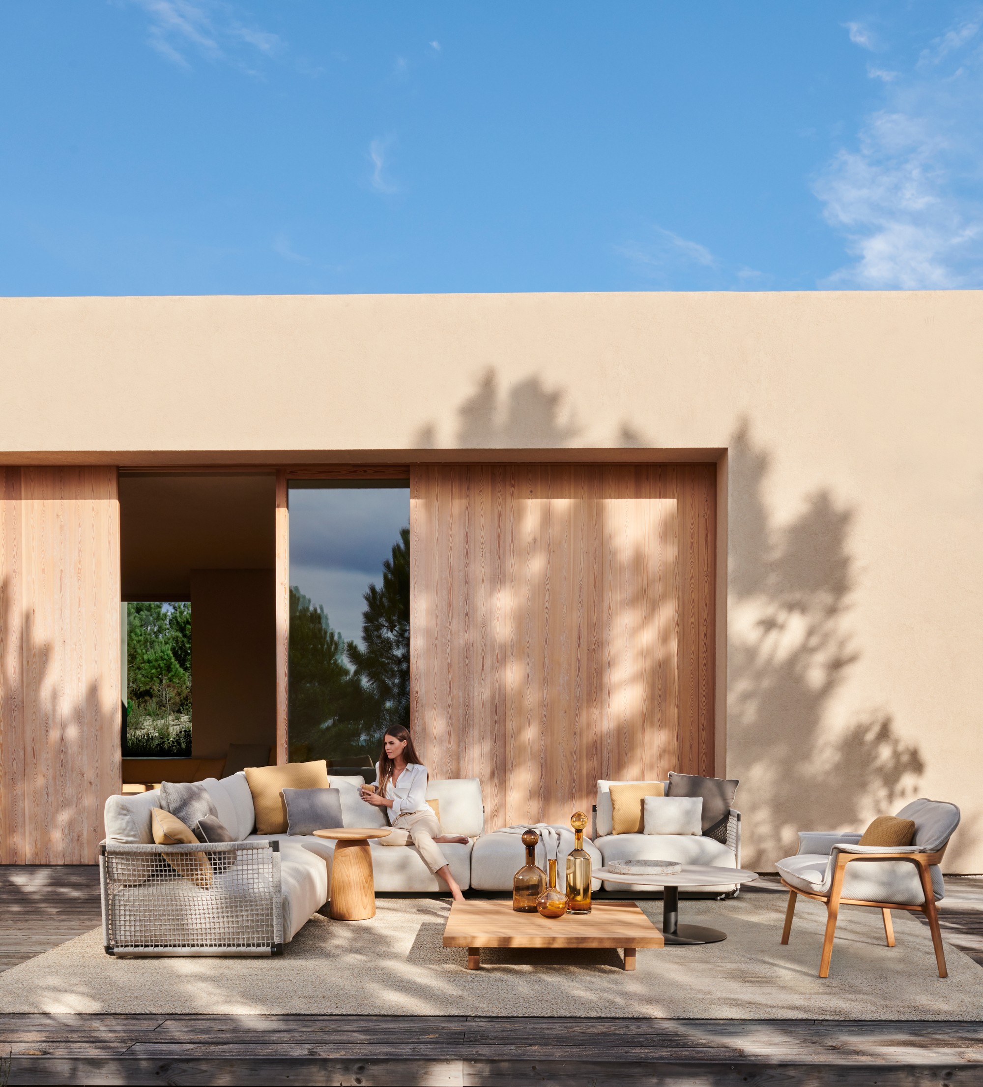 The modular Nodi sofa has a strong personality, yet it sits easily in an outdoor setting without dominating it. The frame is made of solid, marine-grade stainless steel, but the ingenious design by Yabu Pushelberg keeps the profile light.The sofa has an openness and architectural appeal thanks to its curve and grace. The extra-soft and airy cushion filling makes Nodi exceptionally comfortable. It is also wonderfully adaptable, with three interchangeable seating elements and four seat depths.