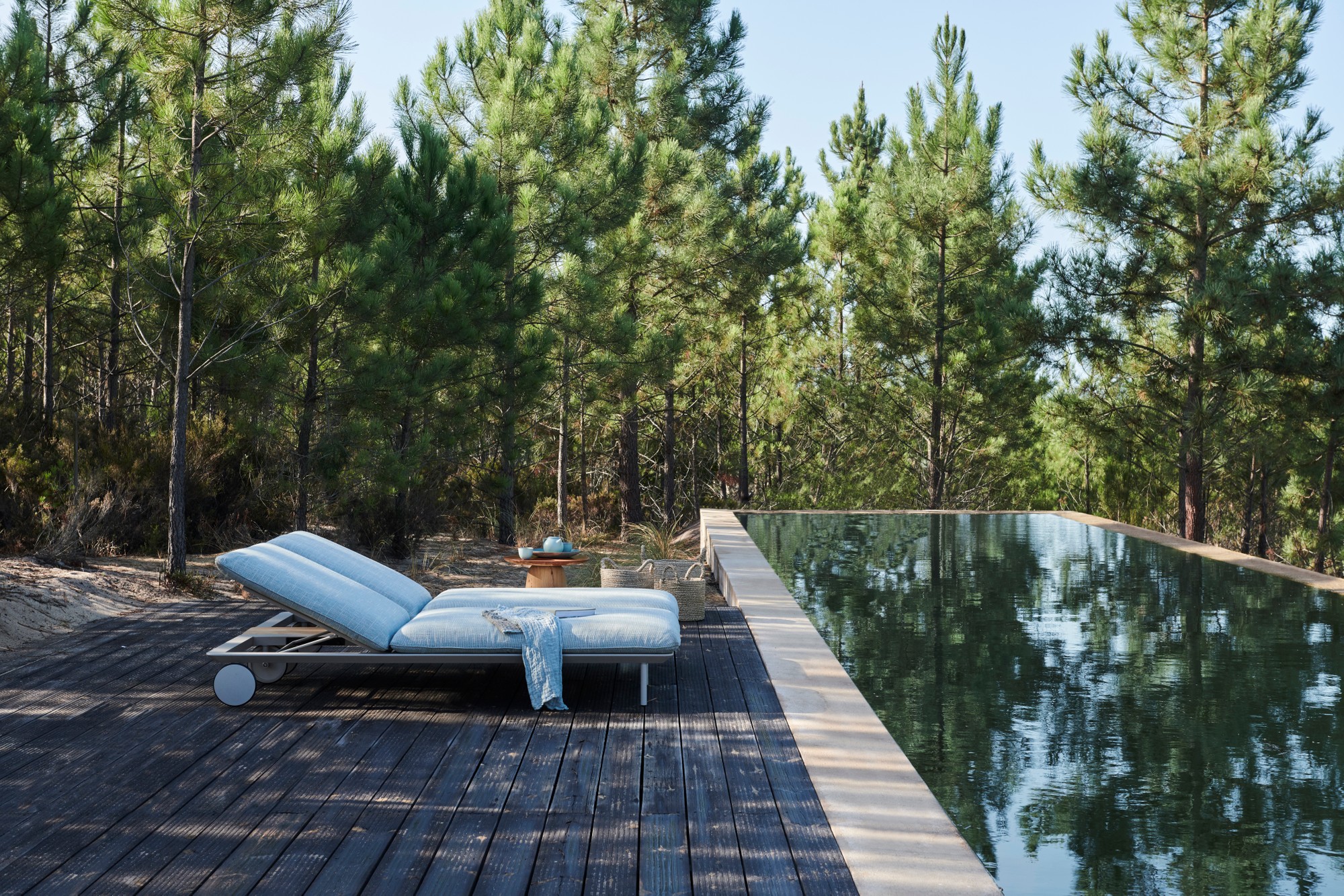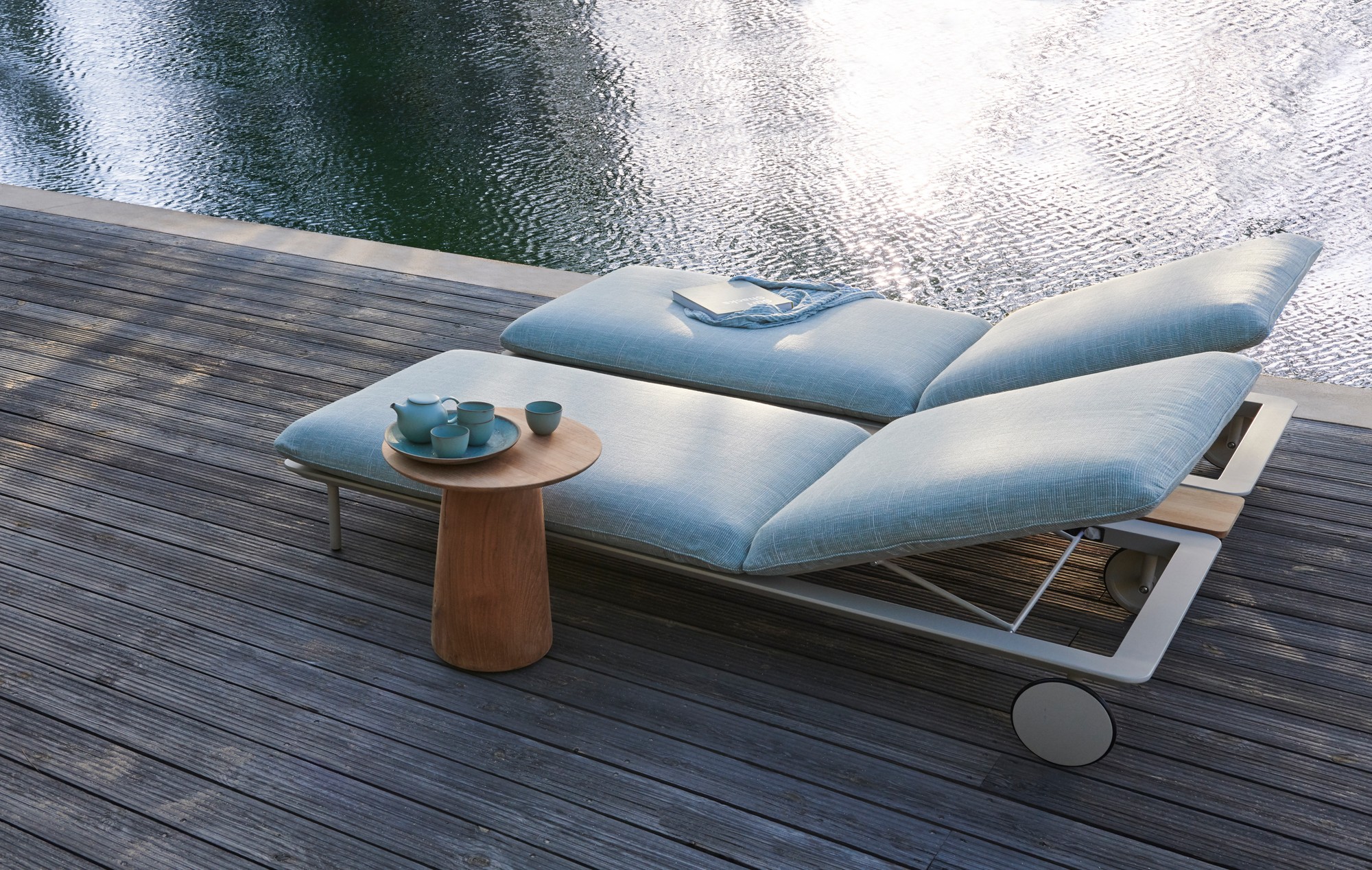 Ultimate comfort is the essence of the Senja lounger. The voluminous cushions ease away any stress and an optional full-length teak side table keeps everything close to hand.The extra-soft, weather-proof cushion filling and smooth Batyline covers, combined with a powdercoated aluminium or teak frame, make the Senja lounger as durable as it is indulgently relaxing.