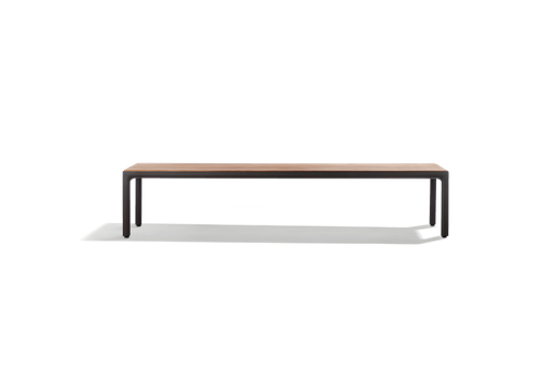The Illum bench is kept pure and simple with beautifully curved profiles complementing the slim legs. The powdercoated aluminium frame is easy to maintain. As for the seat in teak, Tribù uses only the very best teak to be found in Indonesia: A-class wood grown in sustainably managed plantations.