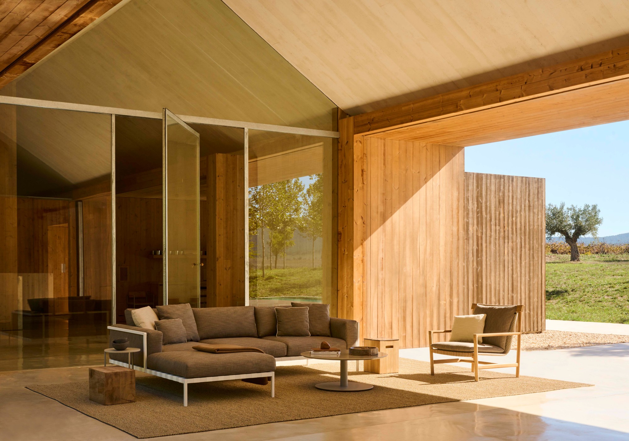 A subtle frame with curved armrests contrasts beautifully with the volume of the cushions, supported by a weave of wide textile straps. Timeless and elegant, the Natal Alu is an outdoor sofa that looks great on any patio. With nineteen different modules, two different seat depths, two available frame colours and more than 100 fabrics to choose from, the possibilities are endless. The aluminium frame is powder coated with ultra-durable, UV- and scratch resistant textured lacquer which provides a beautiful matte look. Special attention has been paid to the outdoor cushions, which have a ventilating, water-repellent filling, so they can easily handle a sudden downpour. The seams have an extra inside cover and the thread used to stitch the seams, swells when wet to further prevent water from penetrating.