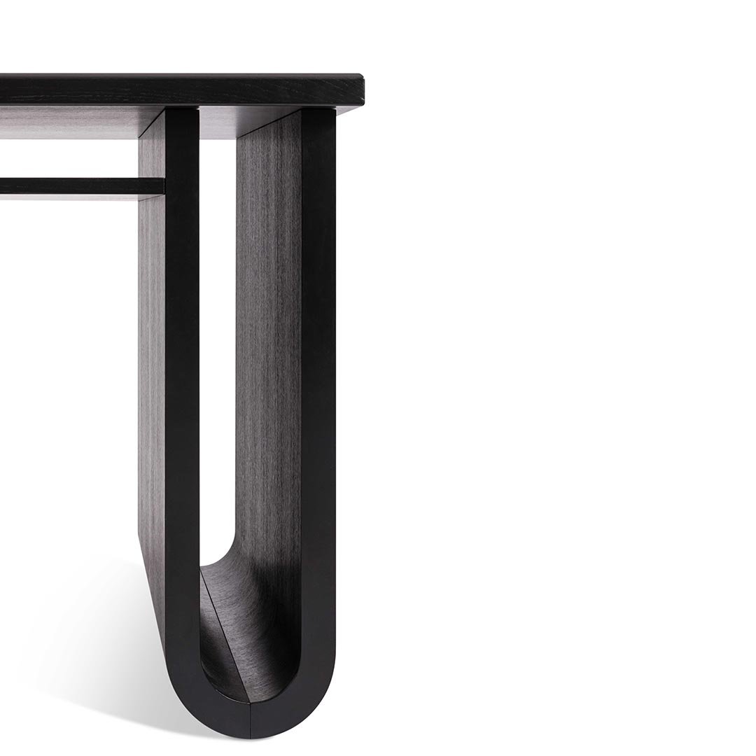 Papel is a sturdy and very light desk. It combines solid elements and cavities, minimal design and rounded shapes drawn from Roman architecture. Its handcrafted solid wood frame features soft, rounded edges. The desktop and the half-circle legs can be covered with leather to create unusual colour effects. Trussardi Casa introduces Papel as a workstation for home interiors.