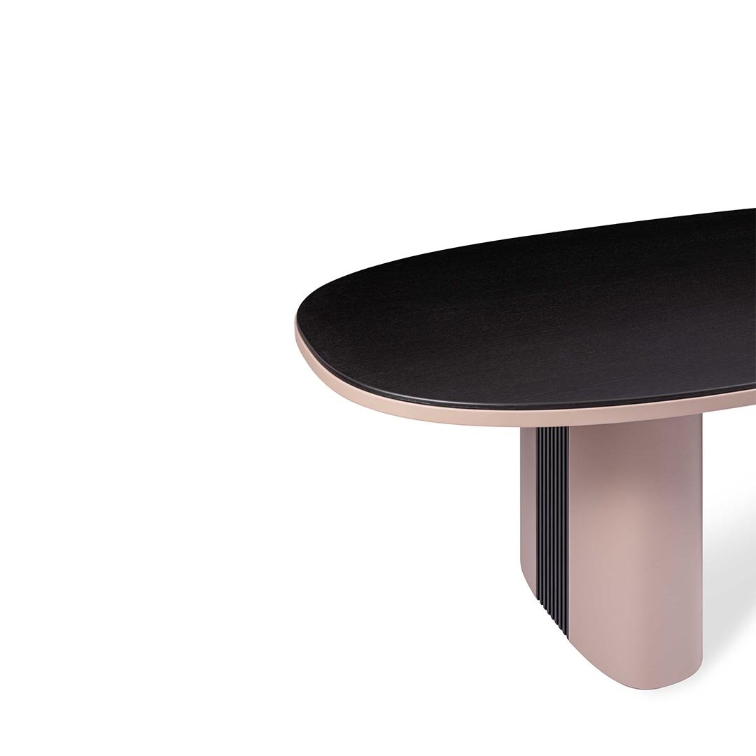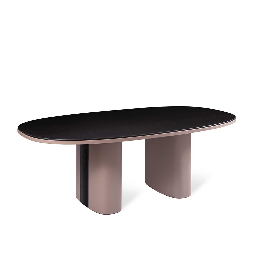 Tangibility and abstraction merge in Sivert, the collection of tables available in various shapes and sizes designed by Antonio Facco. His Milan-based design studio develops multidisciplinary projects combining interior design, products, graphic design and photography. The substantial base, consisting of two sculpted legs decorated with marble inlays, is counterbalanced by stone veining effects that make the tabletop appear dynamic and luminous. Leather is paired with wood or marble. The pairing of two different textures and materials is a distinctive mark of the products featured in the Trussardi Casa collection. It is available in various diameters in the round version and in two different lengths in the rectangular version, representing the ideal balance between timeless design and modern materials.