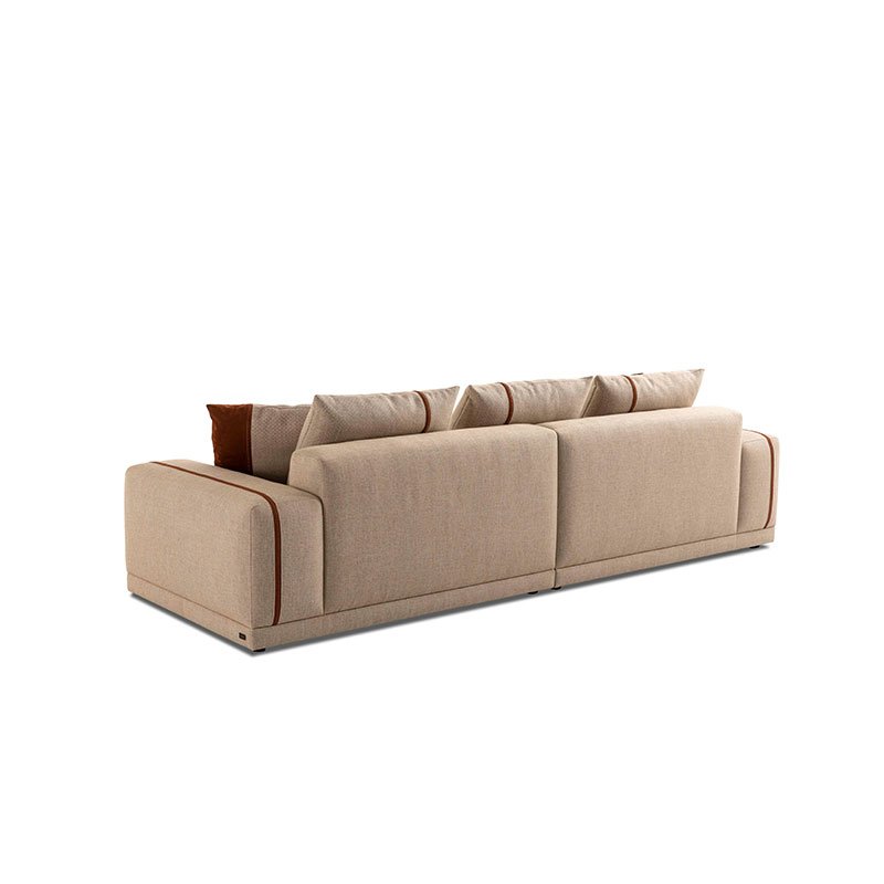 The Milanese brand’s finest leather-crafting tradition and fashion trademarks stand out especially the “Chain Stitch”, a precious leather insert on back cushions, armrests, on ottomans and peninsula seats.