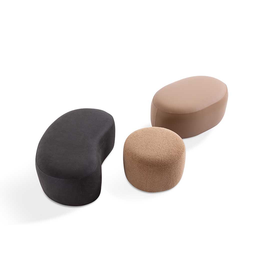 Through Orson, Elisa Ossino has reinvented the idea of the ottoman, offering a vision in which imaginative lines prevail over the definition of its function. The softly rounded, eye-catching organic shapes provide inspiration for a vast array of uses and offer maximum versatility. Wooden frame, cover in fabric or leather.