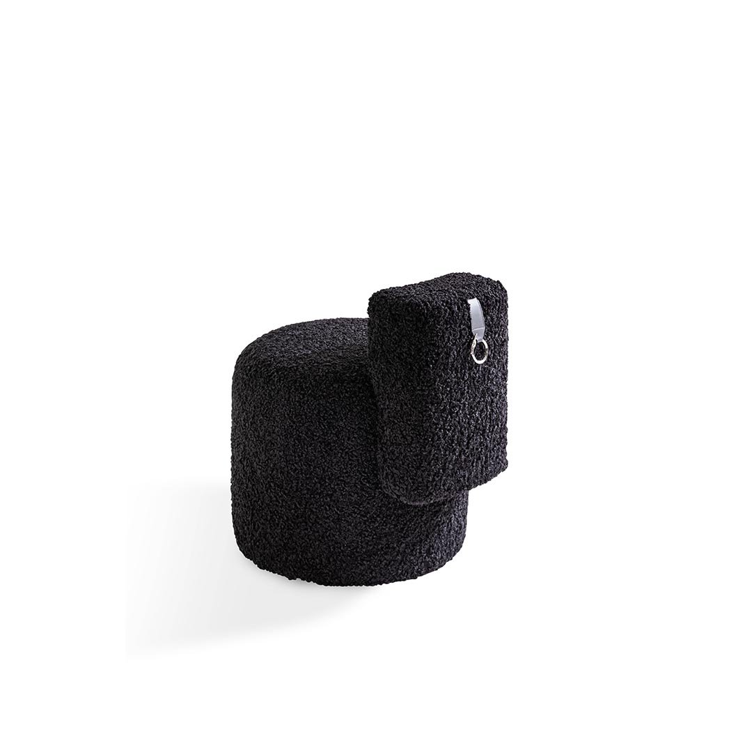 Streamlined design is the stand-out feature of the Cyli stool. A simple cylinder supports the backrest for added comfort. It can be used as an additional seat in the living room, or paired with the Papel desk. Chromium-plated metal hardware in the shape of Trussardi’s circular greyhound logo, a distinctive element featured also on the house’s leather goods collections, is fixed on to a leather strap.