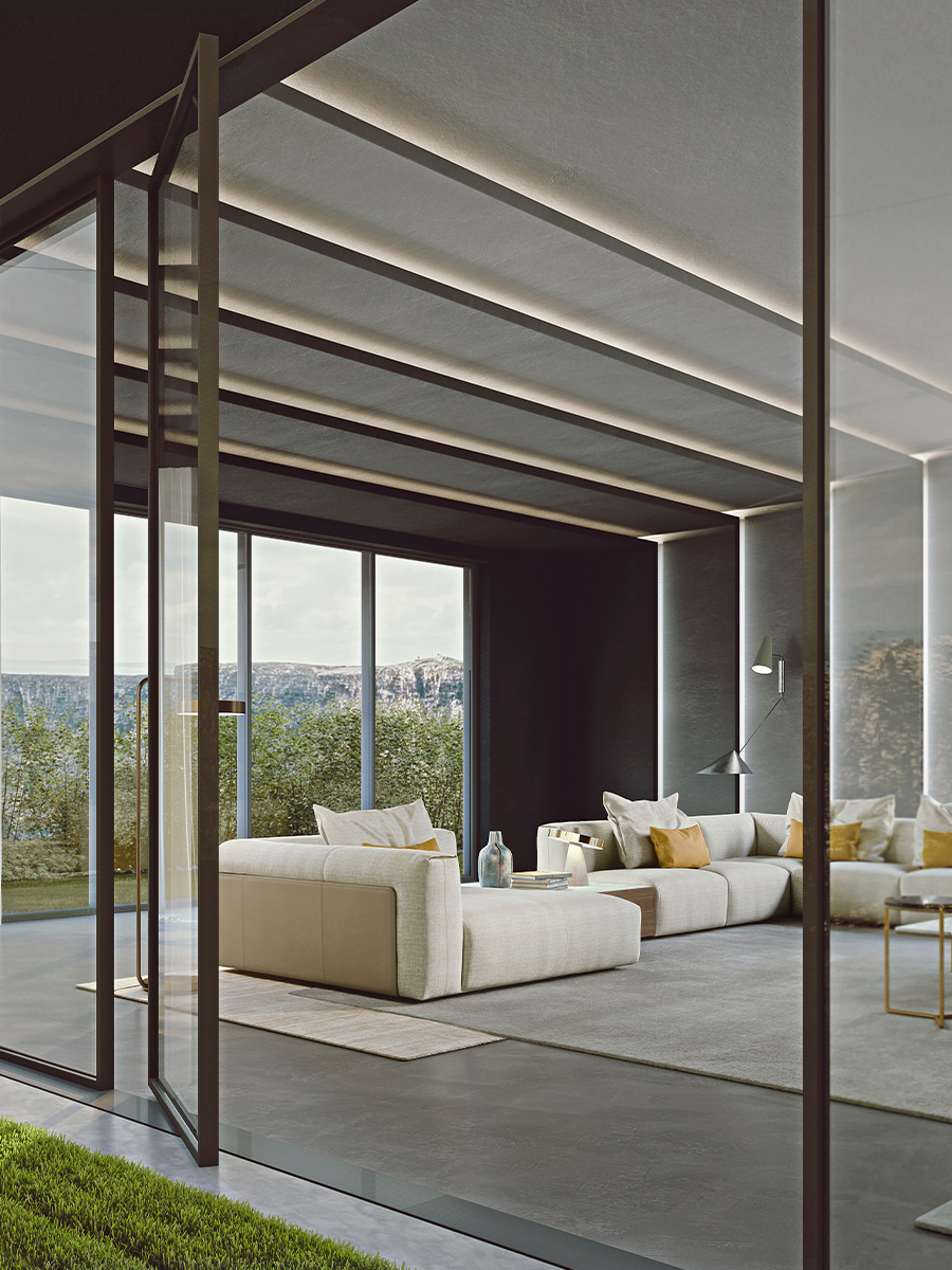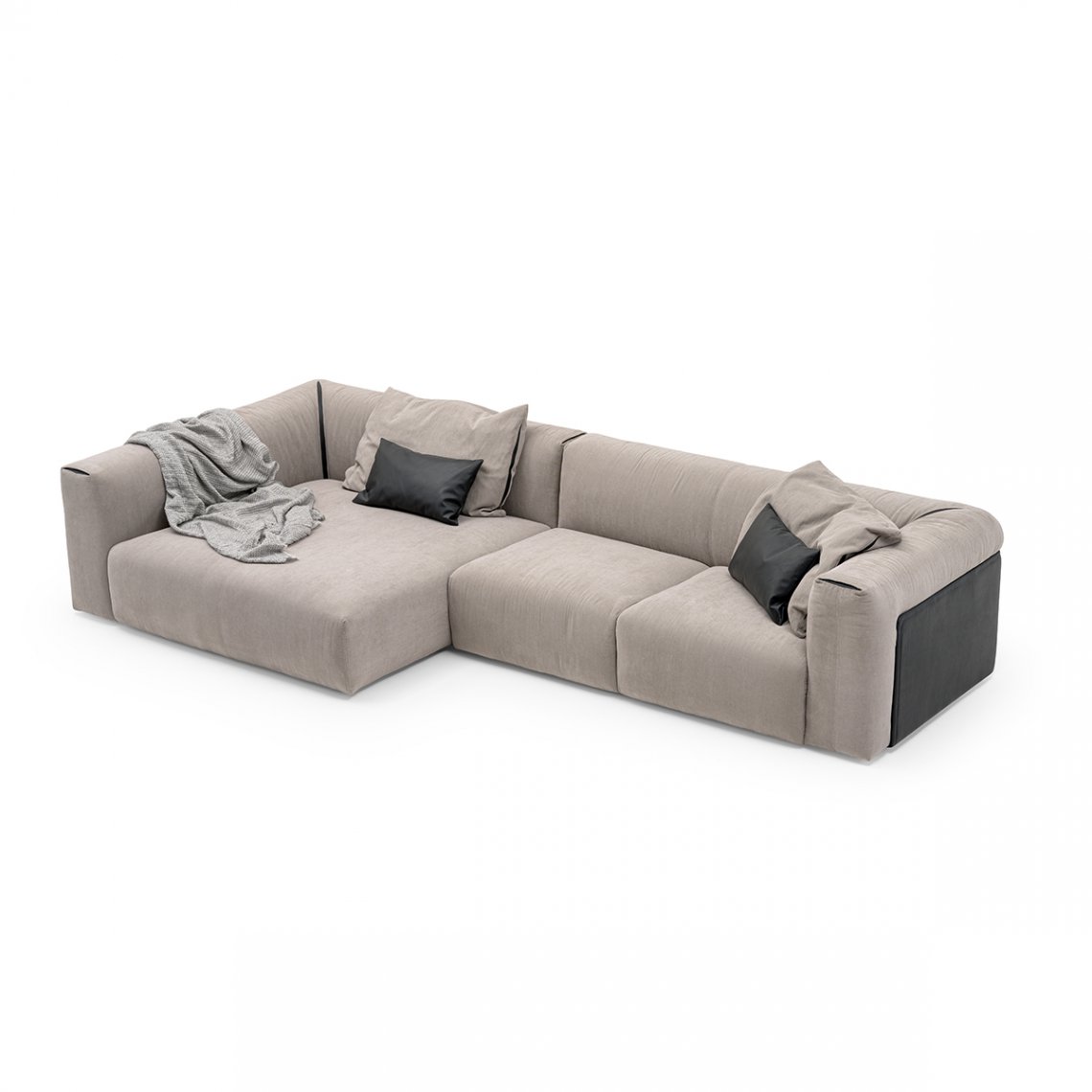 The modular sofa of the Soul collection is a versatile living room. Thanks to the possibility of combining different modules, from corner seats, chaise longue or coffee tables with wooden base and marble top, it allows a wide margin of customization, to create unique pieces of furniture as in the choice of finishes. The Soul modular sofa is available in different finishes as per our samples book.