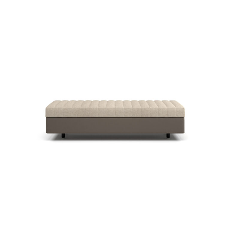 The Domus bench has a contemporary design, its rounded volume invites you to sit. The bench is fully padded, upholstered in leather or fabric and can adapt to different types of environment. The Domus bench is available in different finishes as per sample card