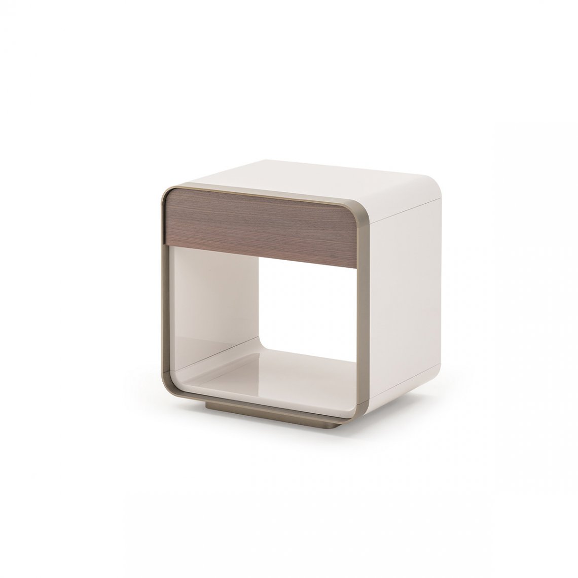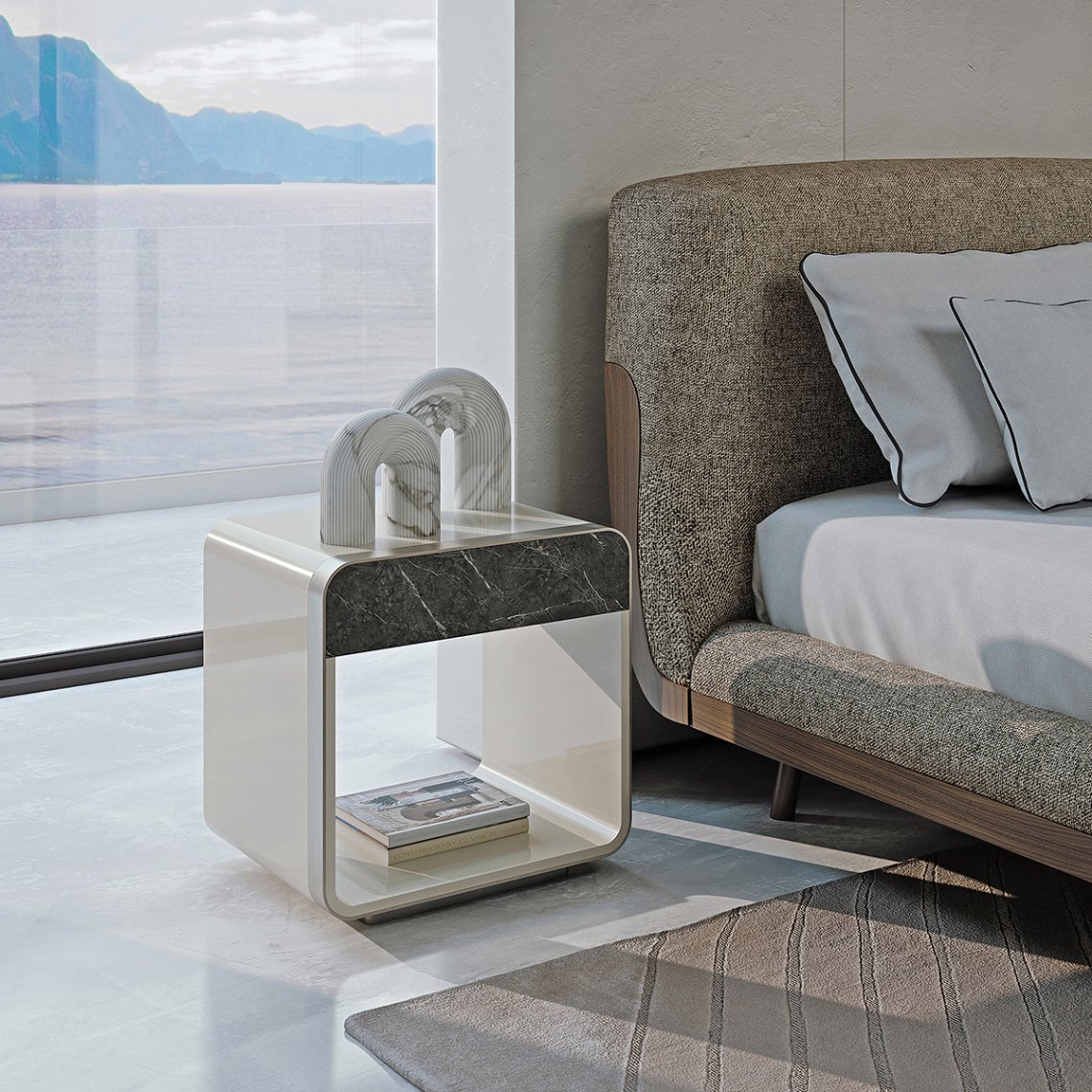 The bedside tables of the Soul collection rest directly on the ground and, thanks to the open compartment and the wooden drawer, have been designed to make the most of all surfaces. The drawer front can be made of walnut or marble. The bedside tables of the Soul collection are available in different finishes as per sample card.